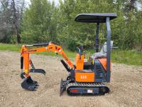 Briggs & Stratton engine, 7 inch track width, 14 inch digging bucket, 36.5 inch blade, 31 inch stick, aux hydraulic, dozer, canopy