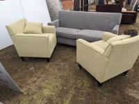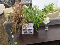 18 (2) Lounge Chairs, Love Seat, (2) Lamps, Side Table, (3) Artificial Plants, Wall Hanging
