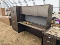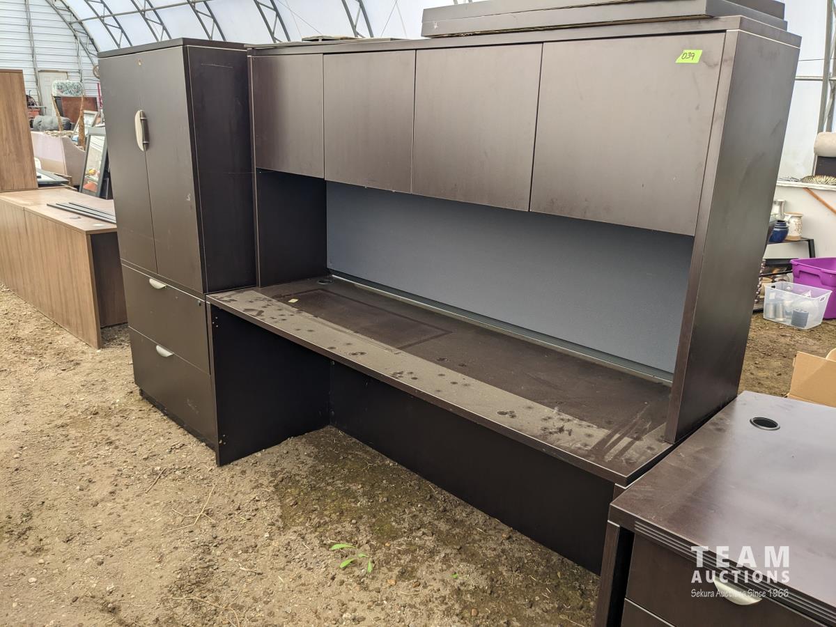 (1) desk 71 inch wide X 45 inch deep X 29 inch high, (1) desk 71 inch wide X 24 inch deep < 65 inch high, cabinet 35 inch wide X 22 inch deep X 66 inch high