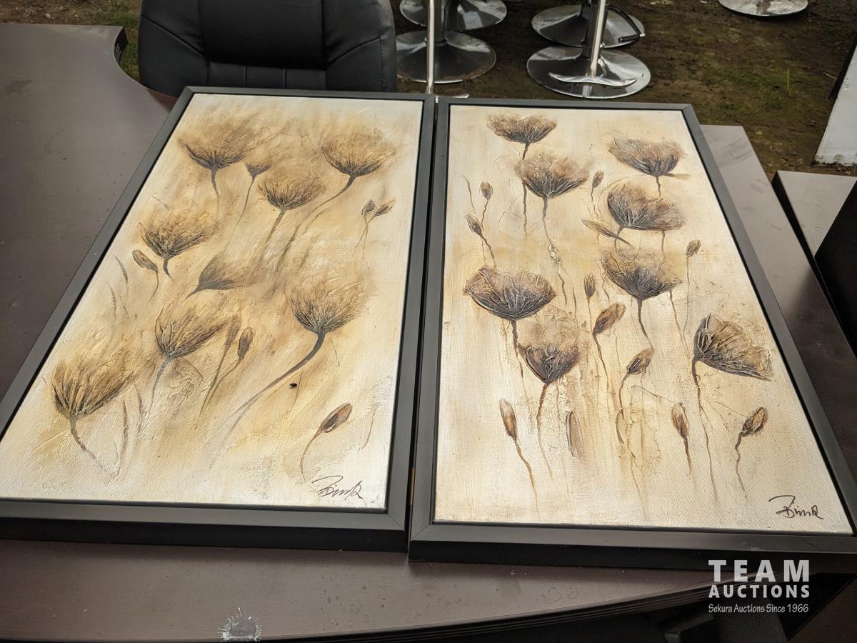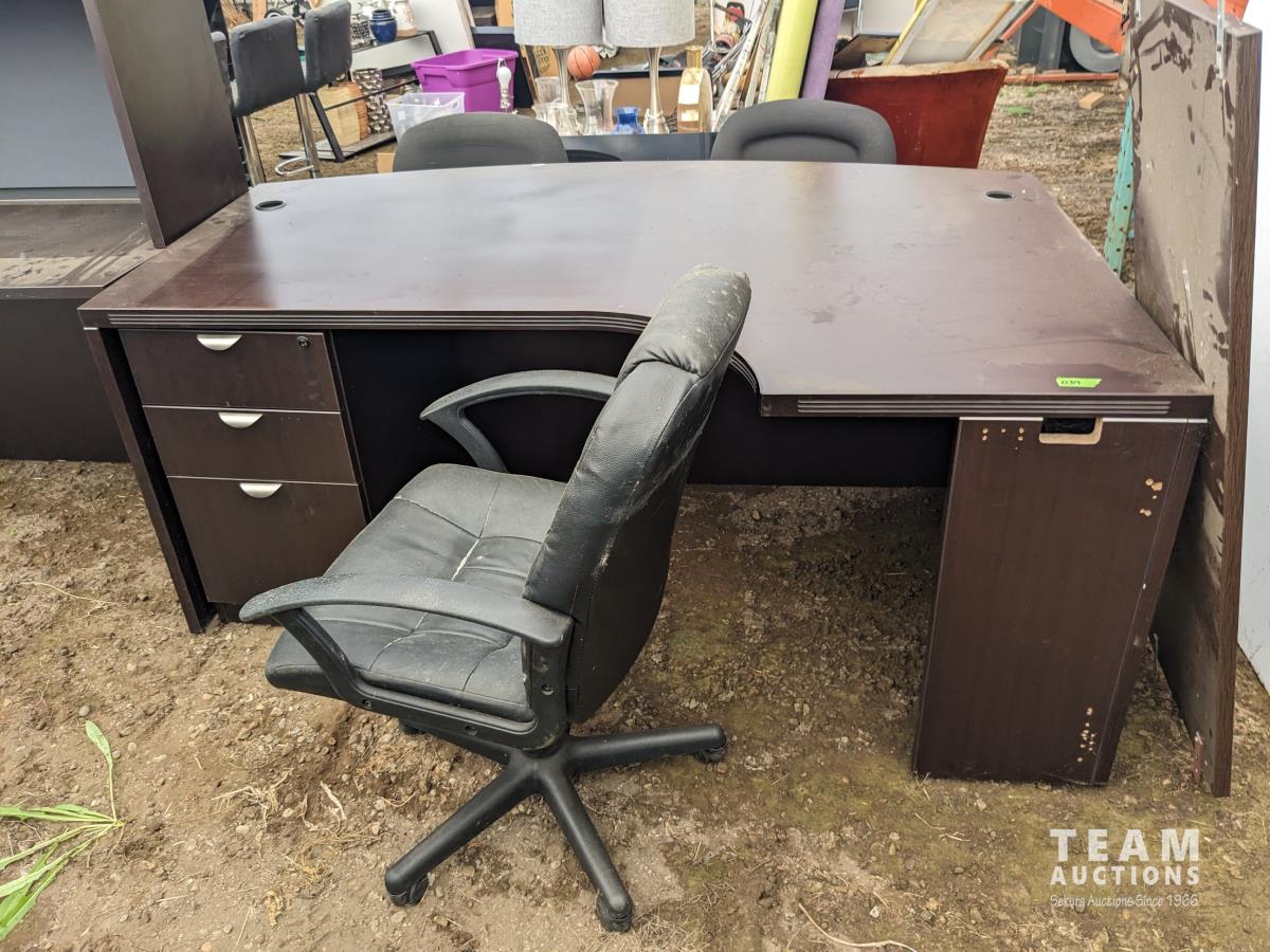 48 (2) Office Desks, (3) Chairs, 2 Drawer Cabinet, (3) Pictures