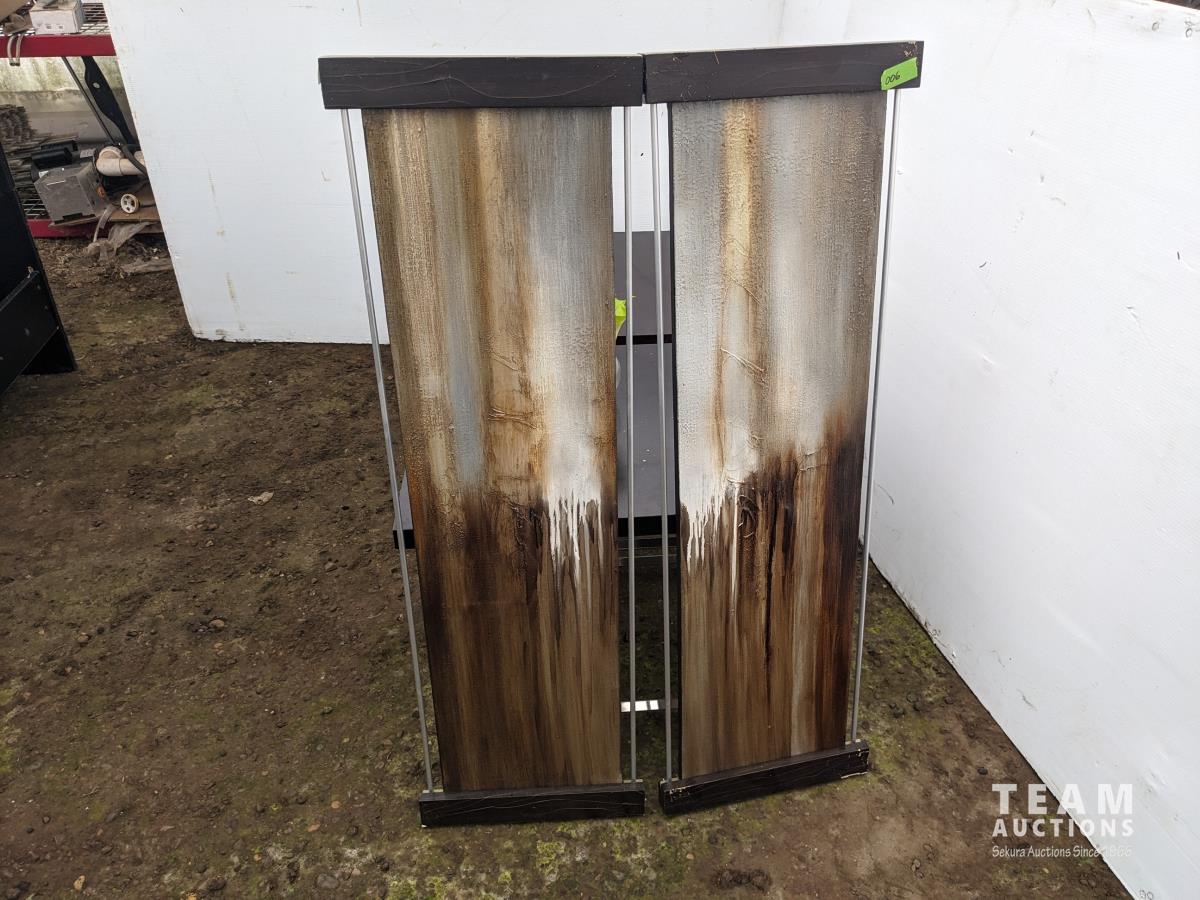 Paintings, 15 inch X 48 inch high, tables 24 inch X 24 inch X 22 inch high