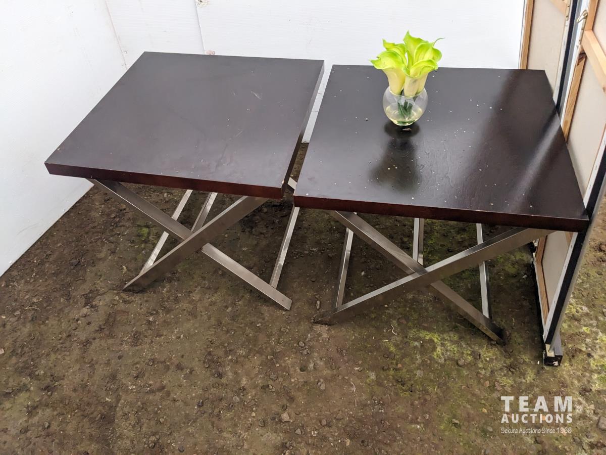 15 (2) Paintings, (2) Side Tables