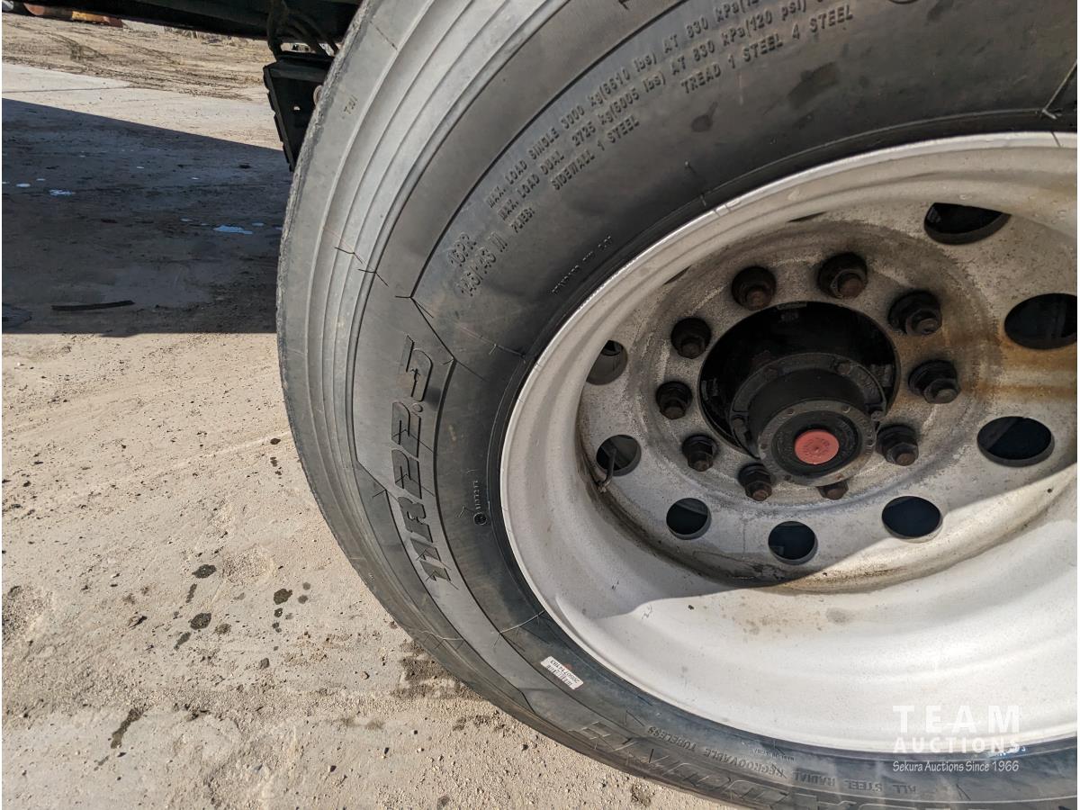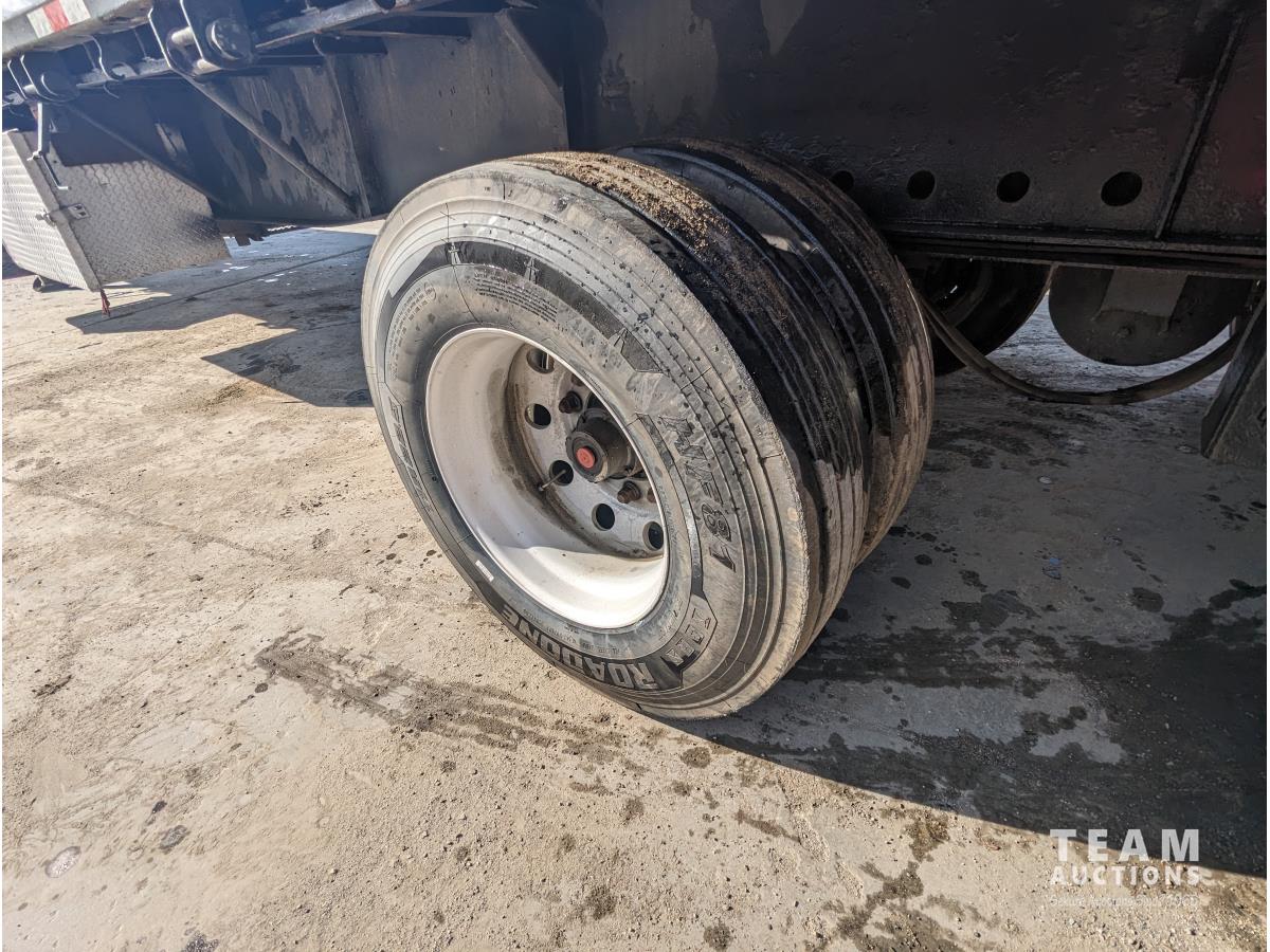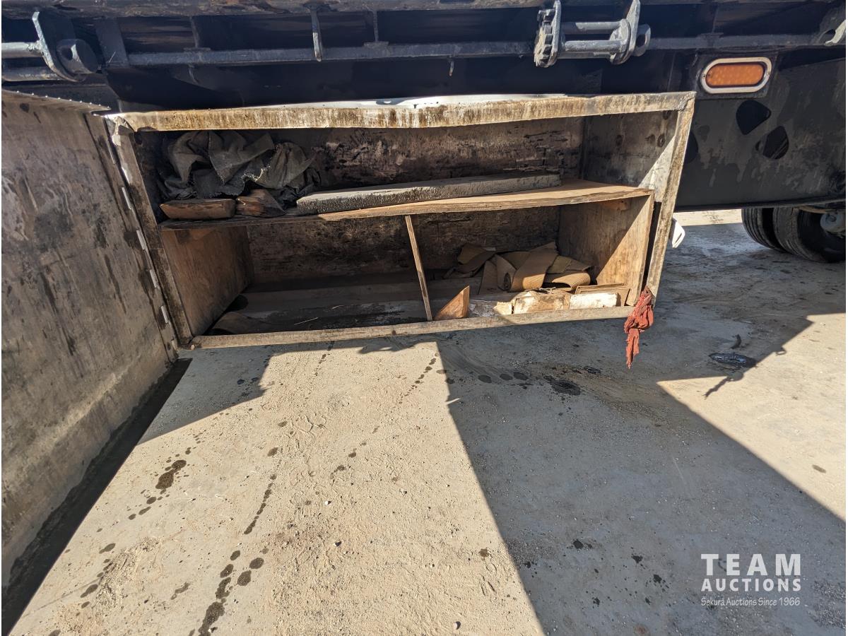 wood deck, stake pockets, rub rails, cargo winches, tool / storage box, air brakes, 11R22.5 tires