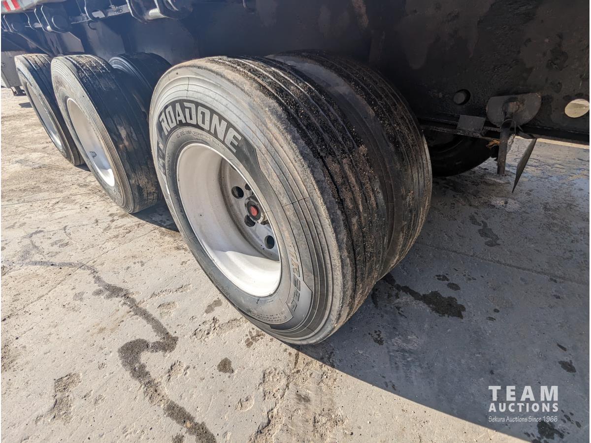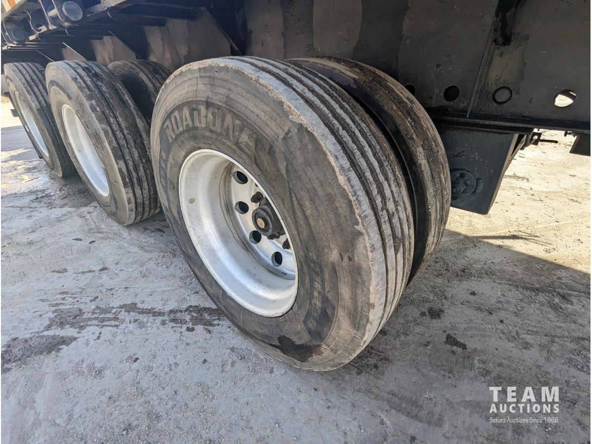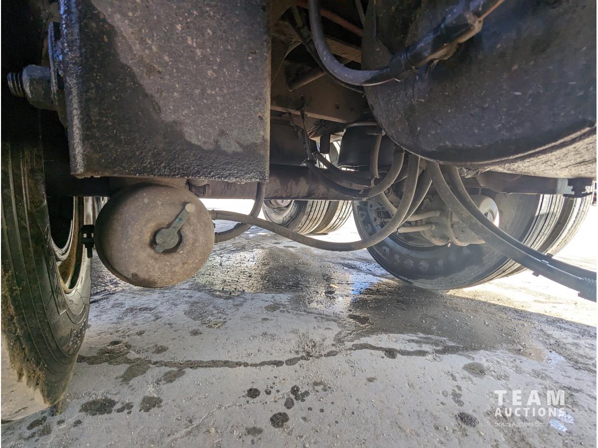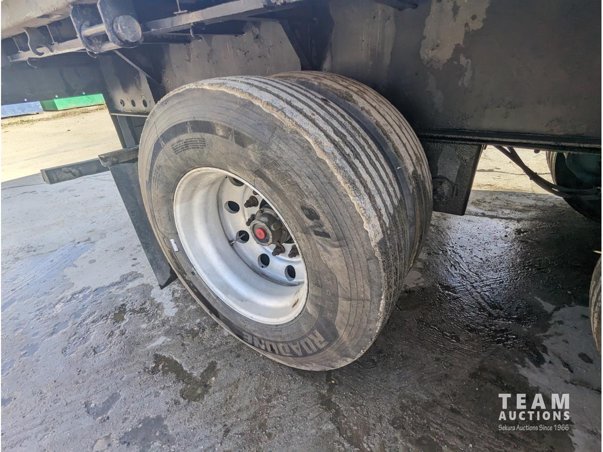 wood deck, stake pockets, rub rails, cargo winches, tool / storage box, air brakes, 11R22.5 tires