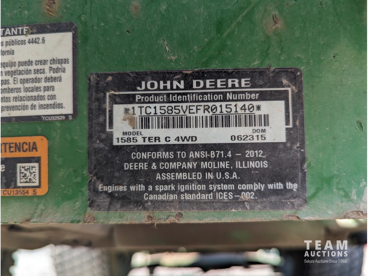 350 2015 John Deere 1585 72 Inch 4WD Front Mount Lawnmower