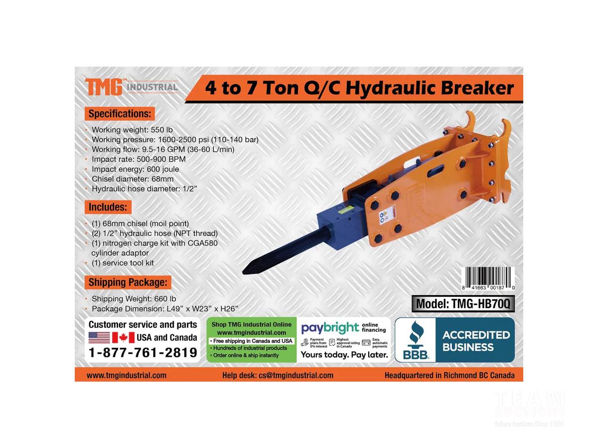 281 TMG Industrial HB70Q 4-7 Ton Hydraulic Hammer Breaker- Excavator/Backhoe Attachment (Unused)