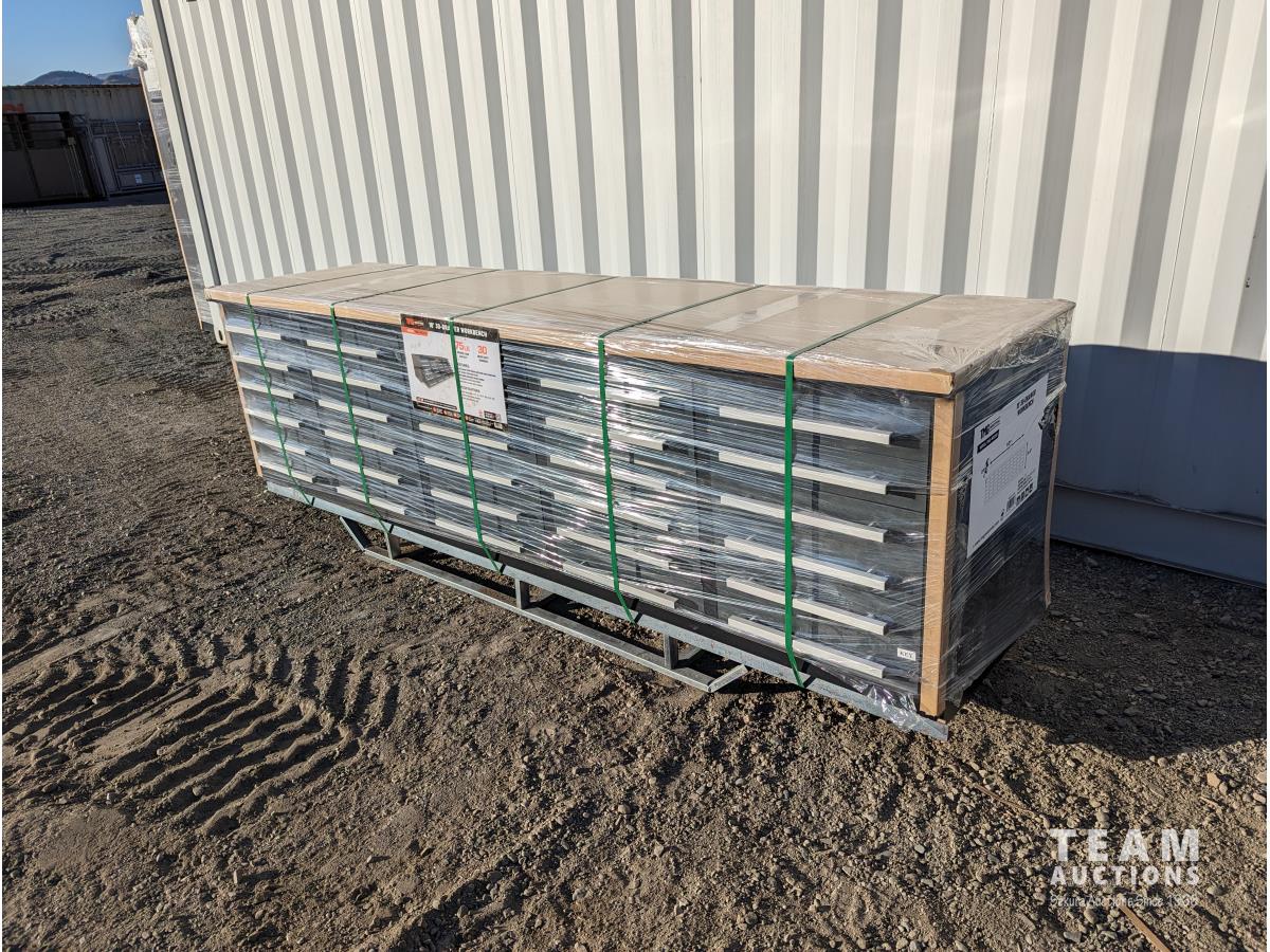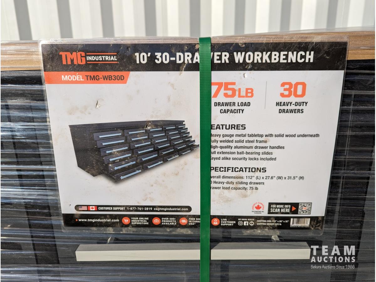245 TMG Industrial WB30D 10 Ft 30-Drawer Workbench (Unused)