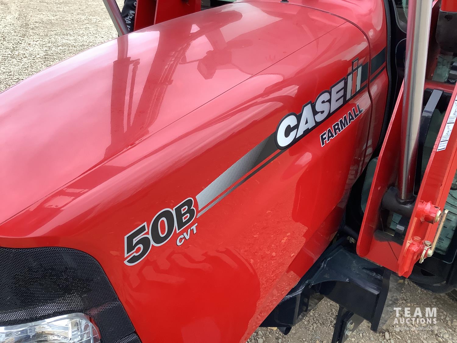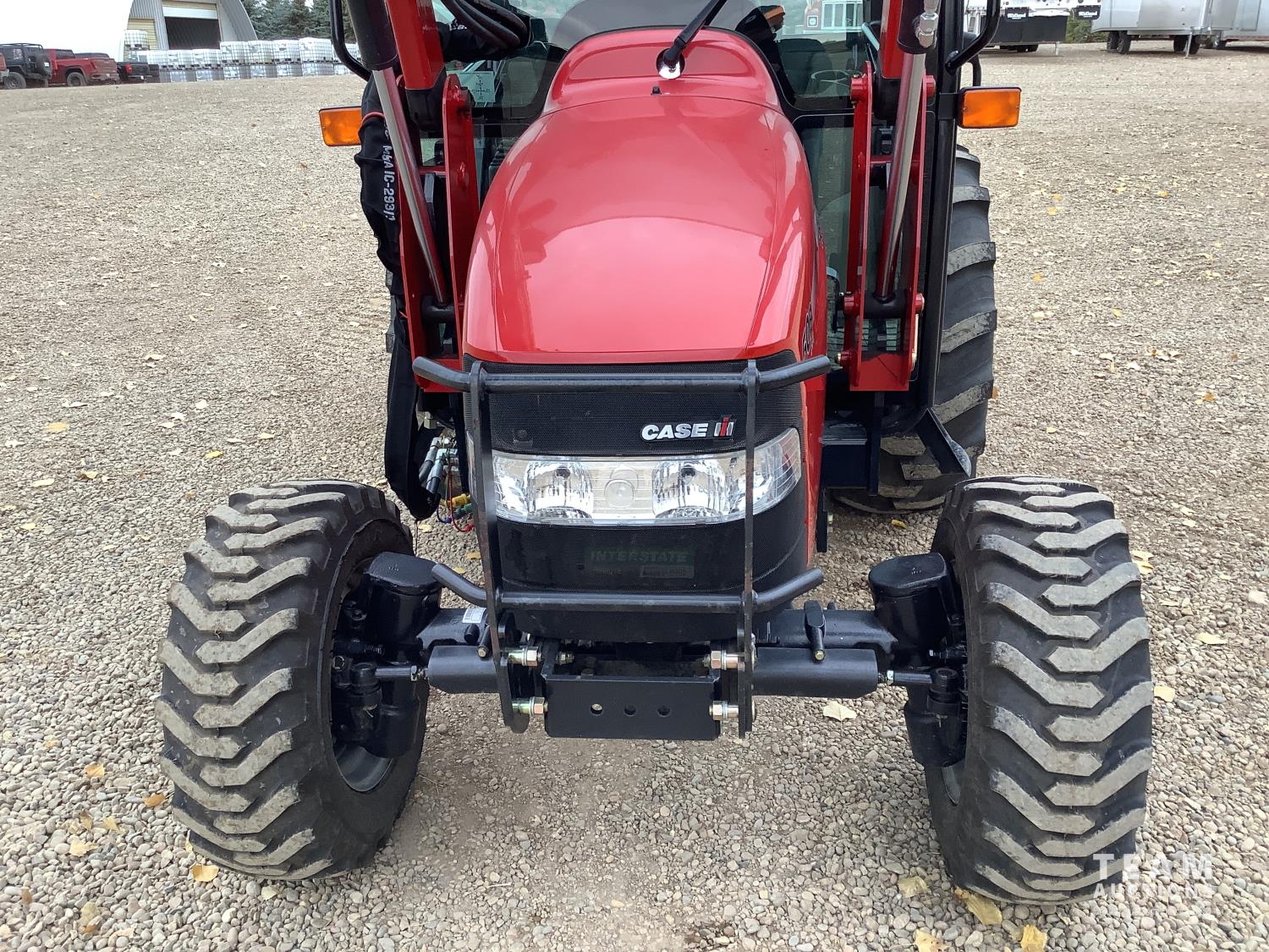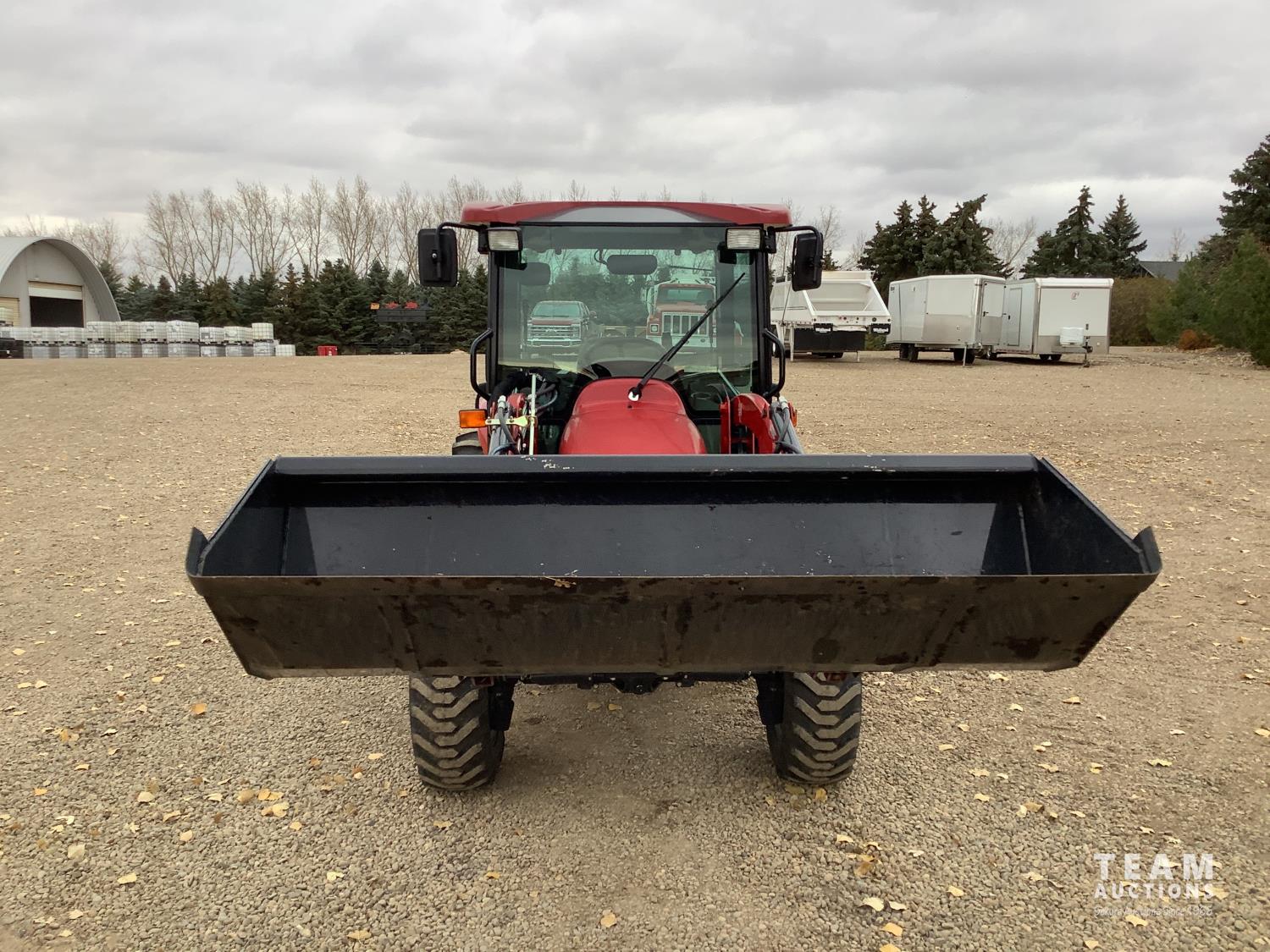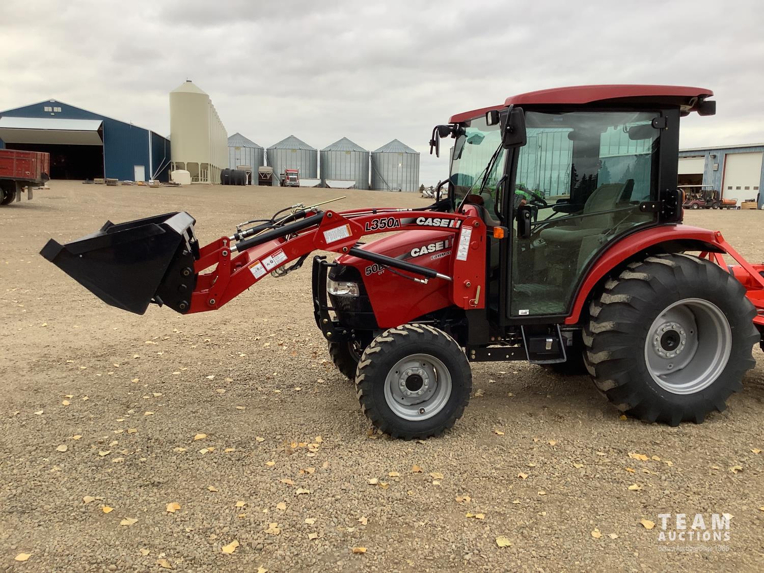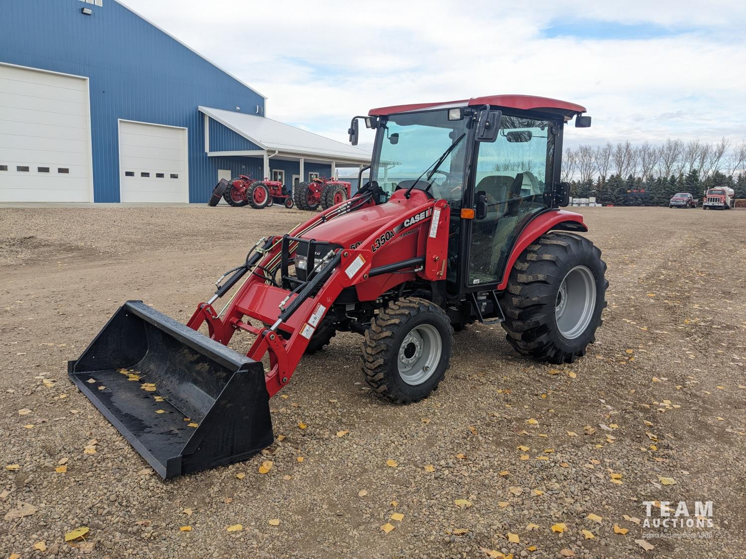 Case IH L350A loader, Q/A, bucket, mid mount hydraulic connection, Mitsubishi S4QL 2.5 L 4 cylinder diesel engine, CVT transmission, cab, left hand reverser, joystick, A/C, upgraded stereo, grill guard, 540 PTO, 3 point hitch, 2 rear hydraulic outlets, 10-16.5 front tires, 17.5-24 rear tires