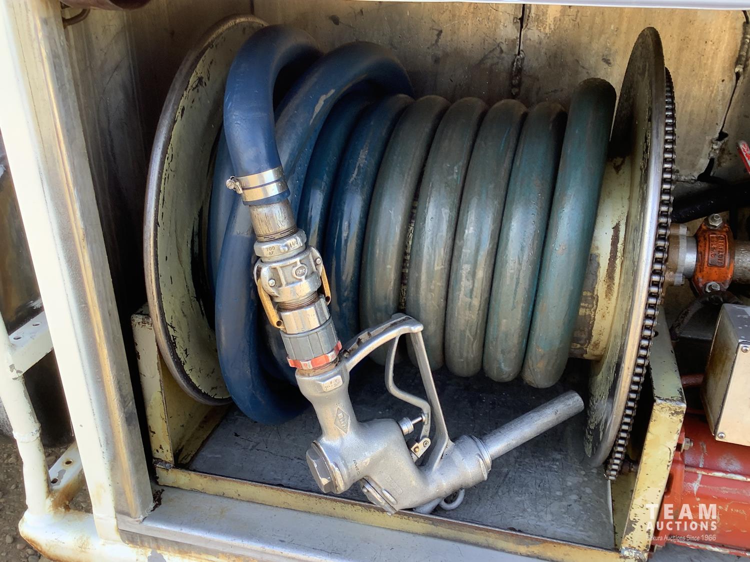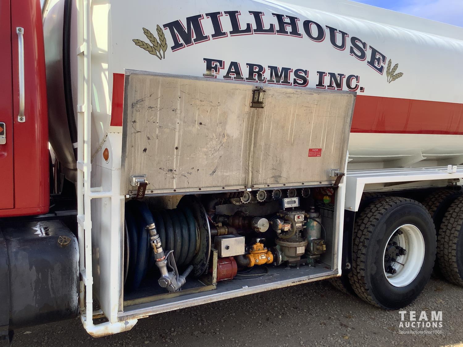 International DT466 6 cylinder diesel engine, 13 speed manual transmission, Westank Willock 5 compartment tank, electric hose reel, auto shut off nozzle, , spring suspension, 12,000 lb front axle, 40,000 lb rear axles, diff lock, 234 inch WB, 11R22.5 front tires