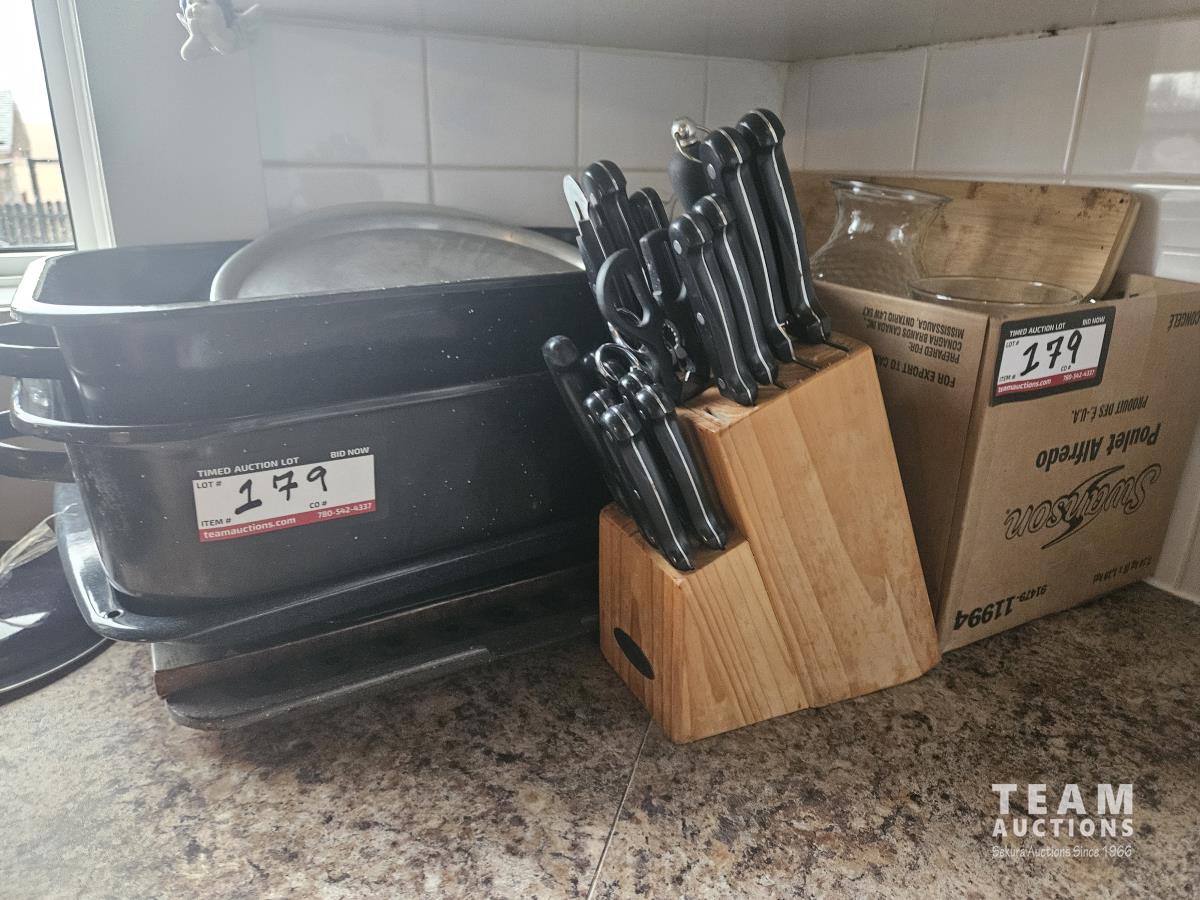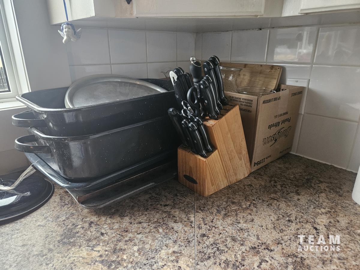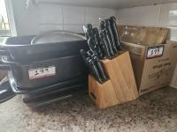 Knive set, Oven Pans, Glass Vases