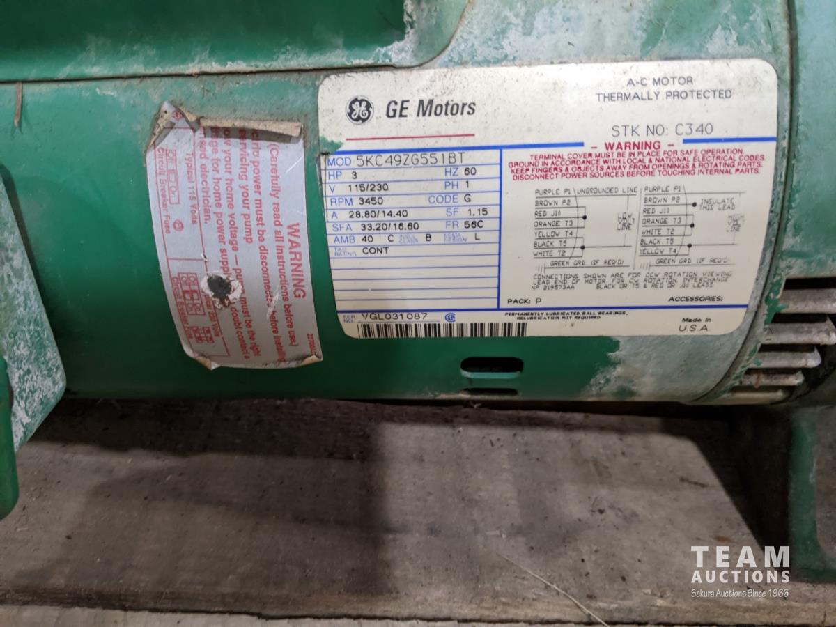 GE Motor, 3HP, 115/230V, 3450RPM, single phase, thermally protected