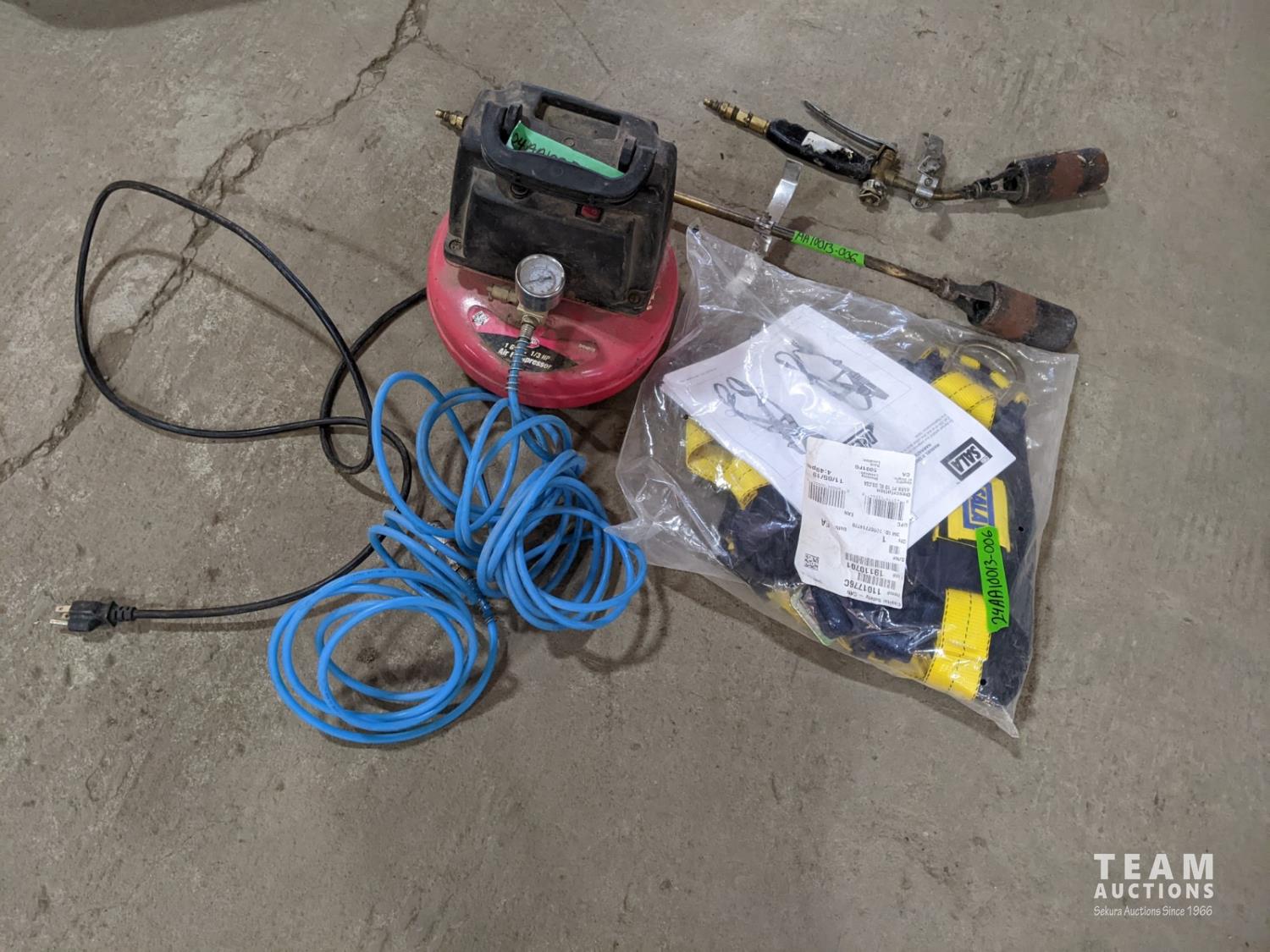 1041 (2) Propane Torches, Safety Harness and All-Power 1 Gallon Air Compressor