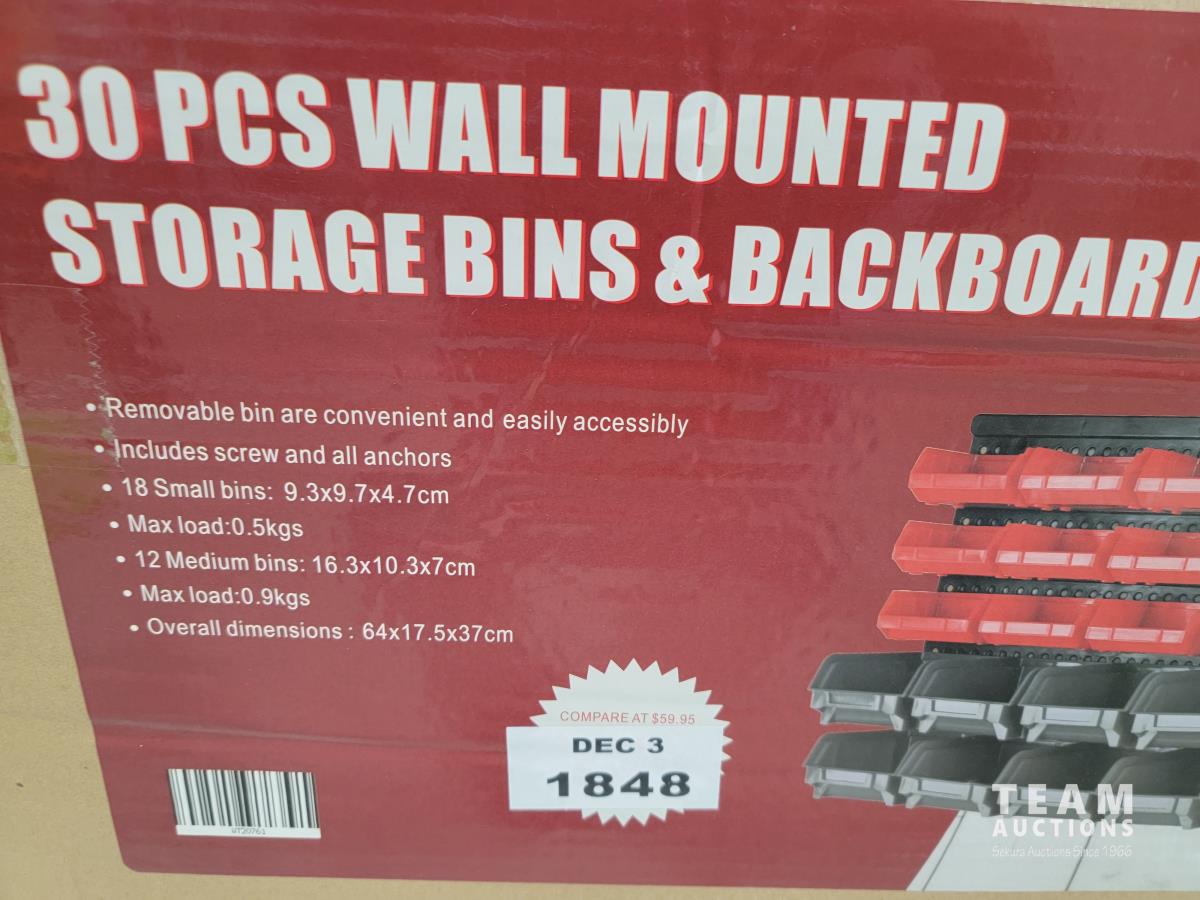 1560 30 Piece Wall Mounted Storage Bins (Unused)