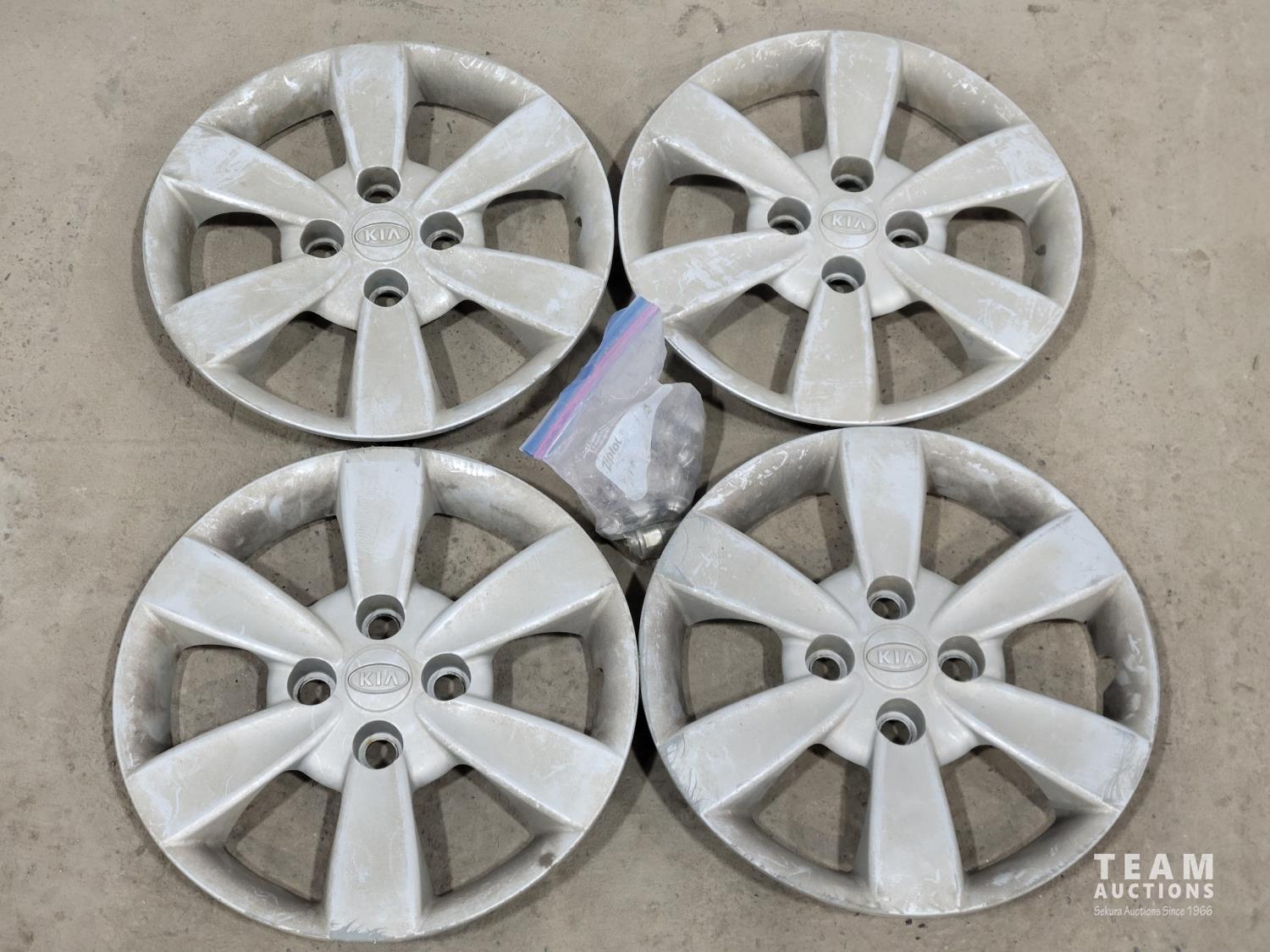 1309 (4) 14 Inch Tires with Four Bolt Rims and (4) Kia Hub Caps