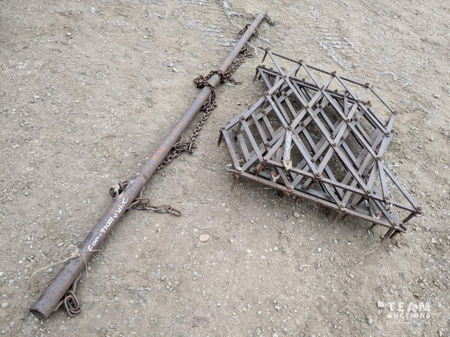 1695 (4) 3 Ft Diamond Harrows and 12 Ft Drawbar