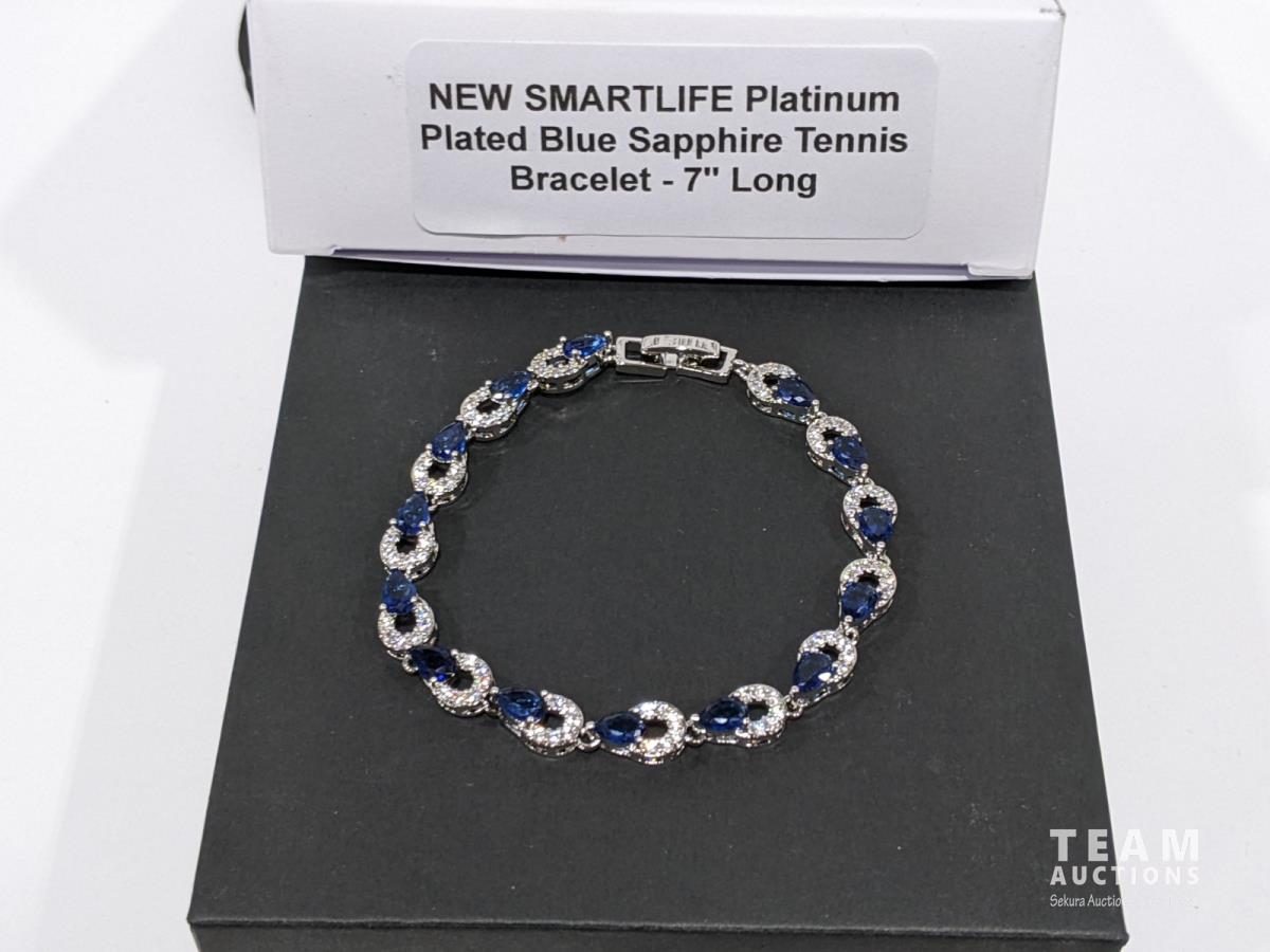 1665 SMARTLIFE Platinum Plated Blue Sapphire Tennis Bracelet (Unused)