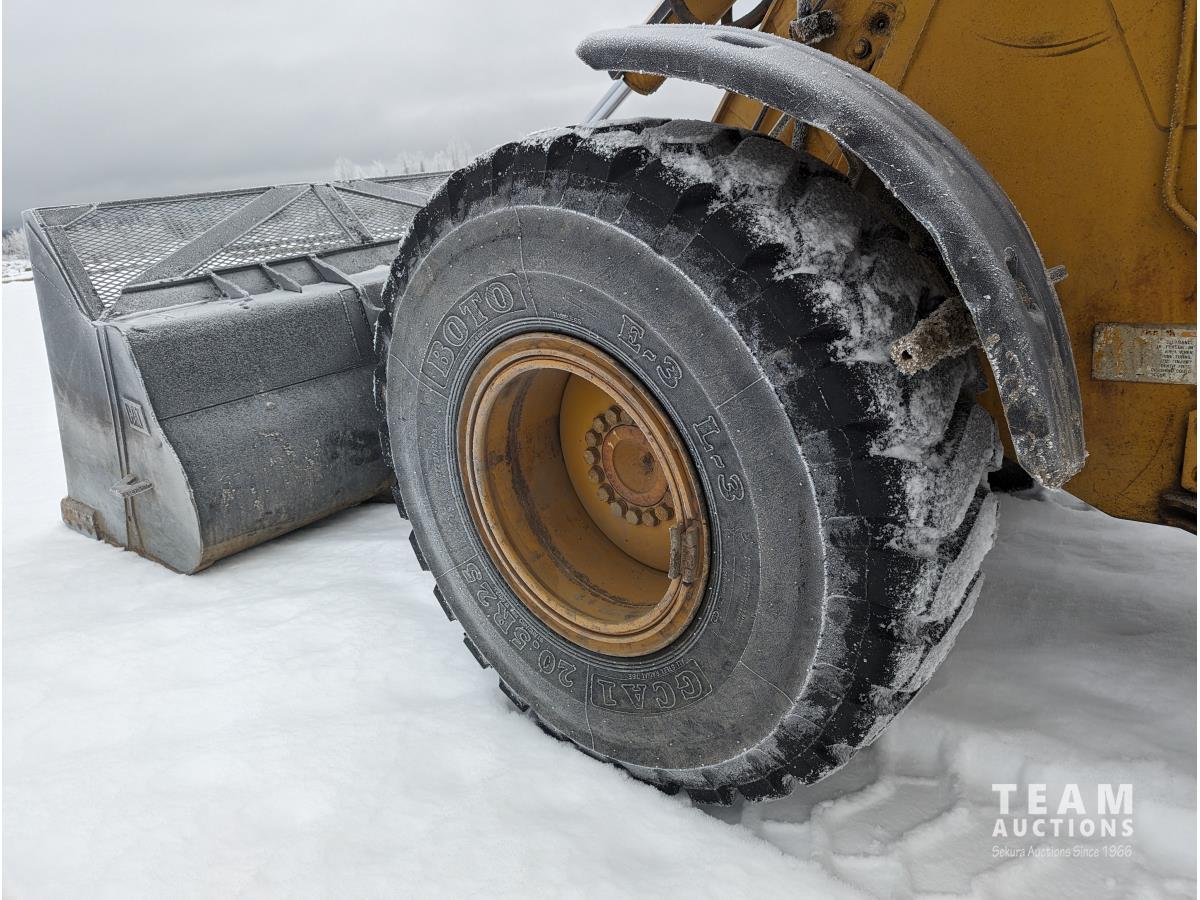 5.9L 6 cylinder diesel, 4 speed automatic transmission, 20.5R25, 8 ft bucket, AC, Attachments sold as separate lots