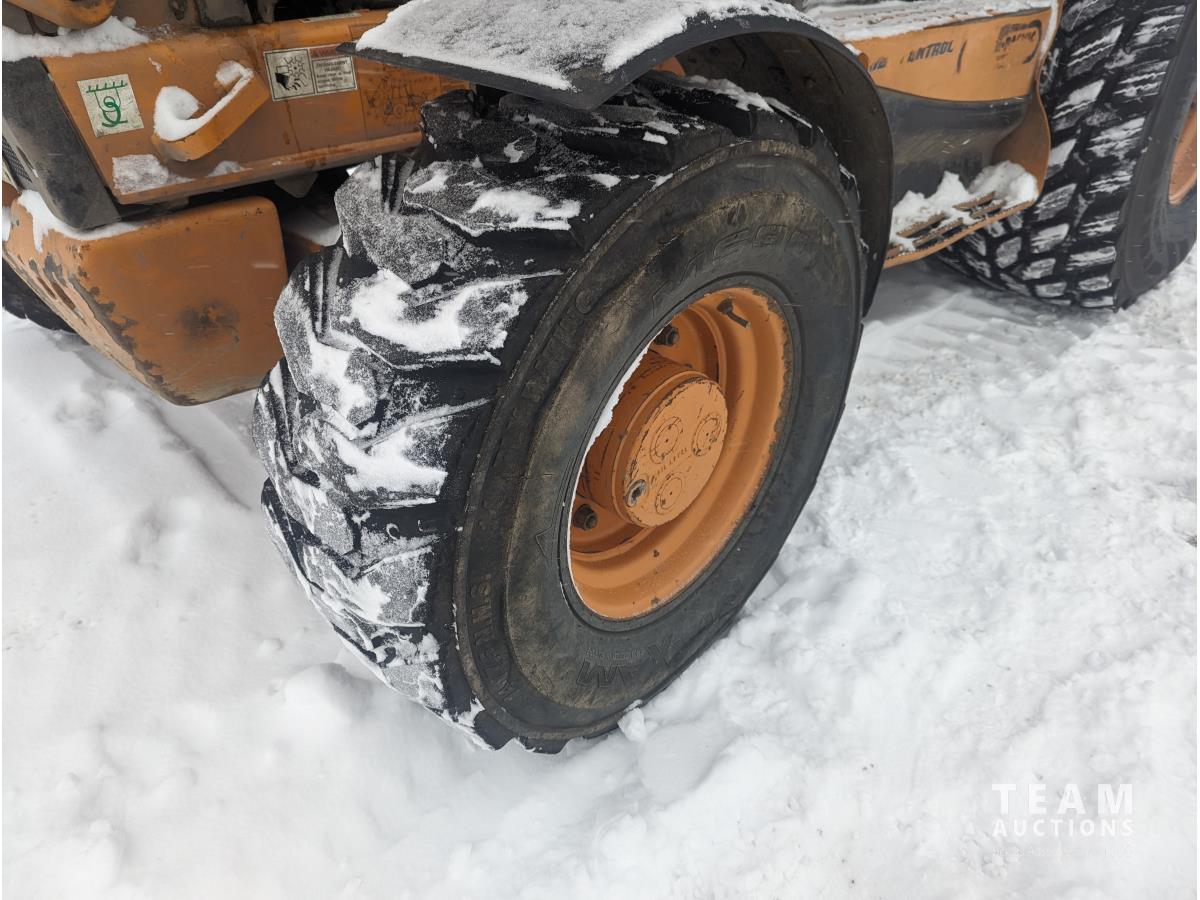 Case 4 cylinder diesel engine, 4 speed transmission, 92 inch multi purpose bucket, extended-a-hoe c/w 23 inch cleanup bucket, enclosed cab, AC, heat, CB radio, radio, 14.1-17.5 fronts, 540/70R24 rears