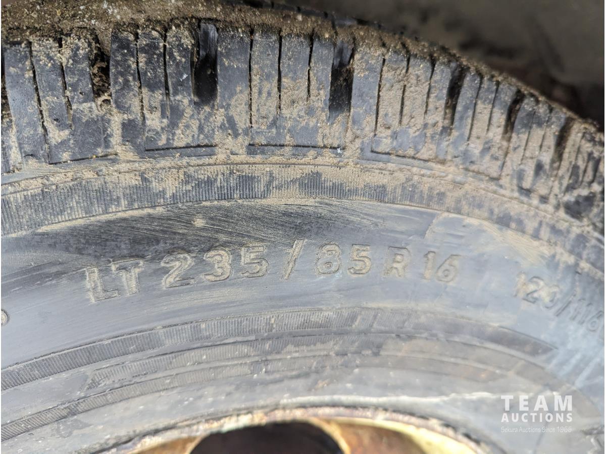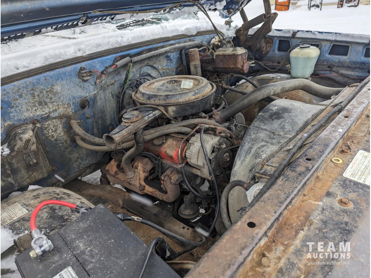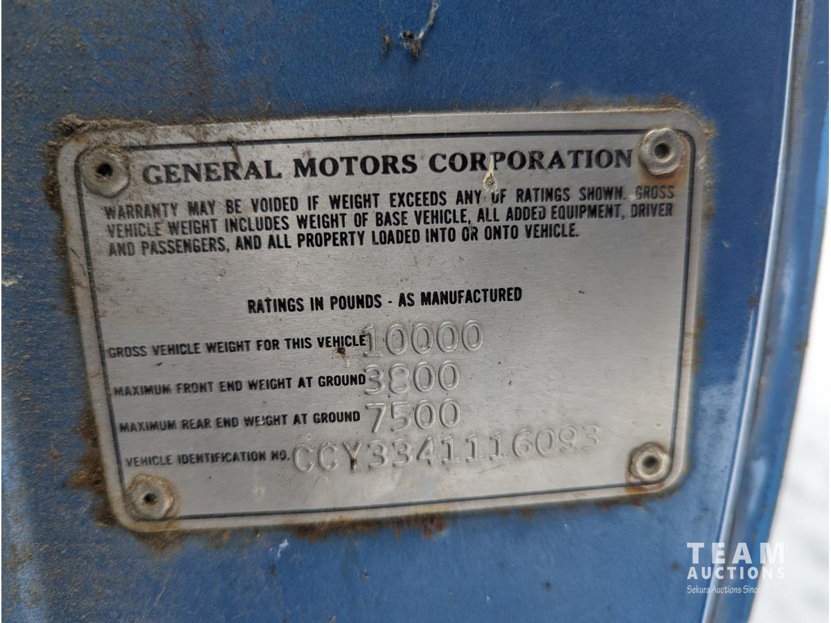 V8, gas, 4 speed manual transmission, 11 ft box, LT235/85R16 tires