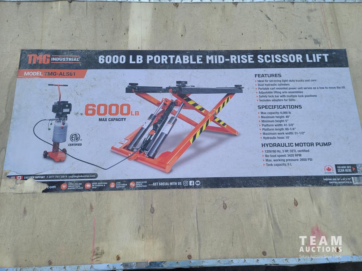 113 TMG Industrial ALS61 Mid-Rise Portable Automotive Scissor Lift (Unused)
