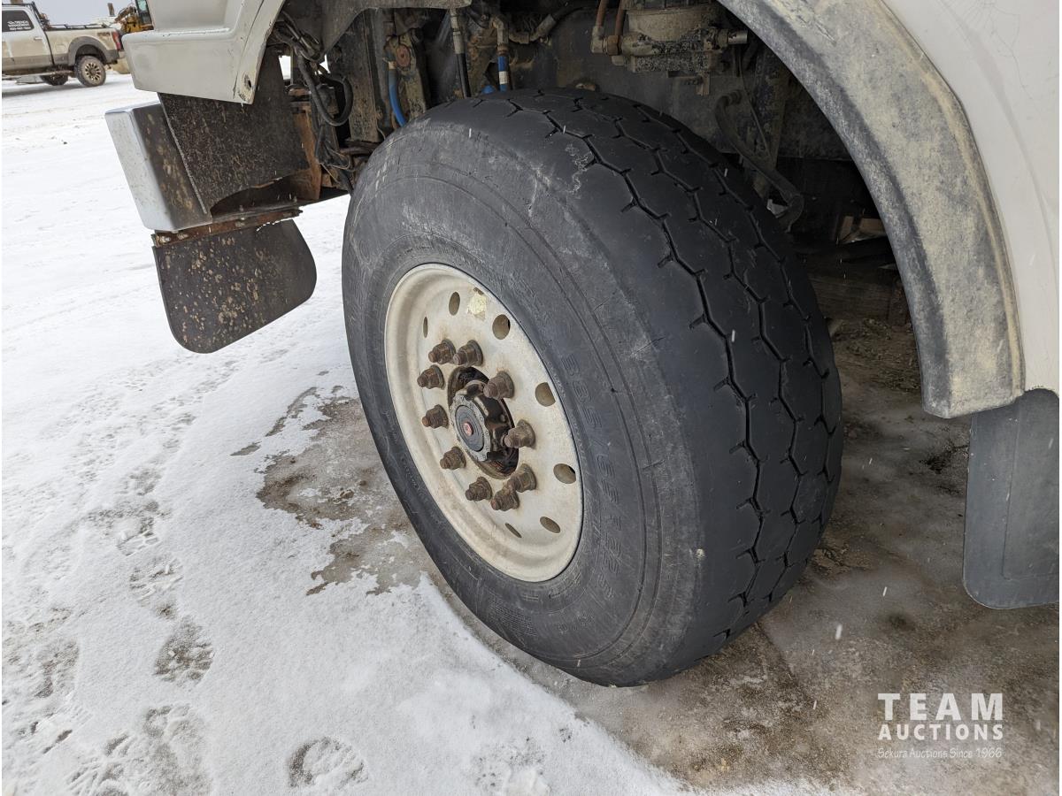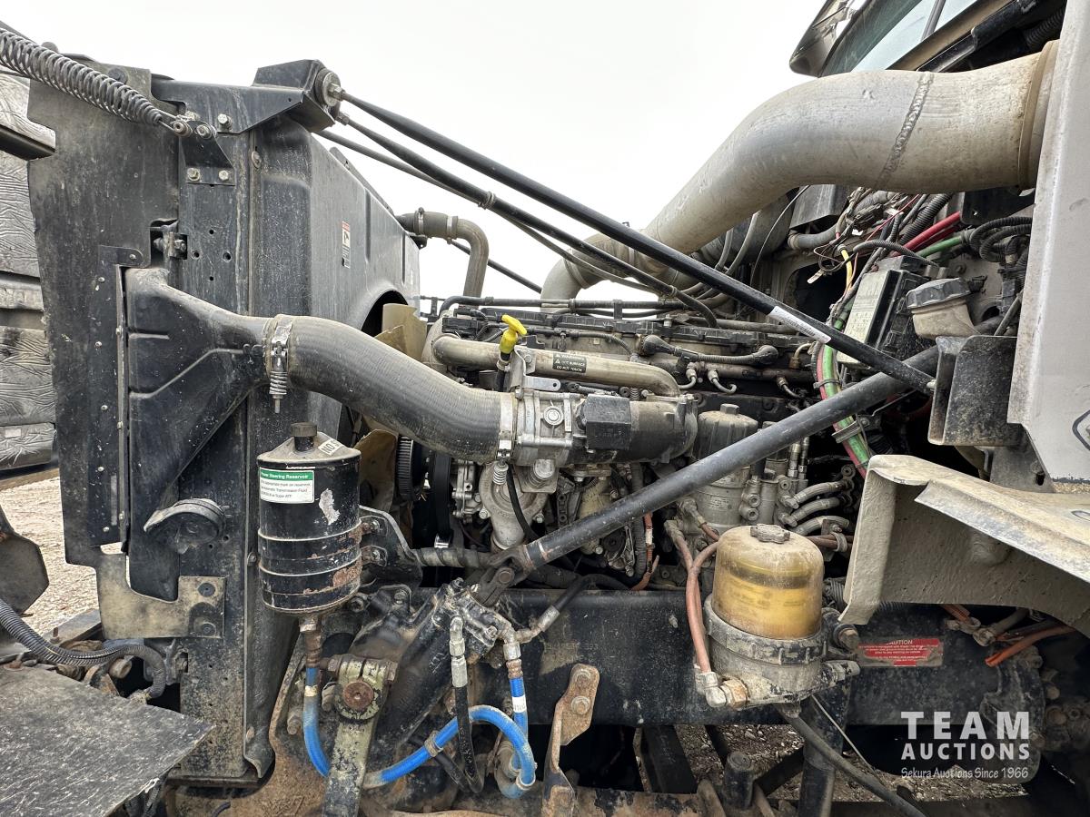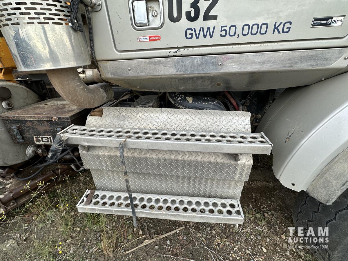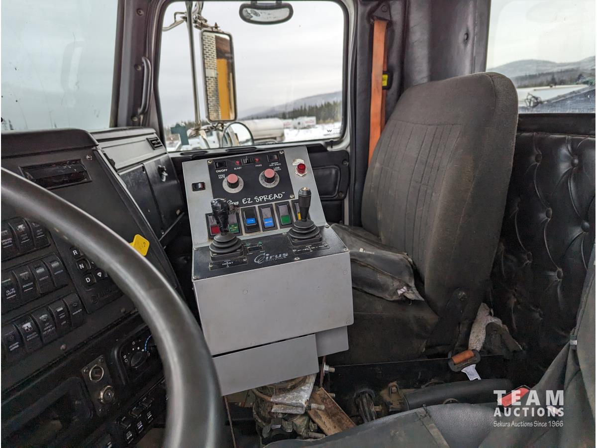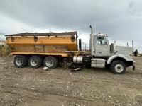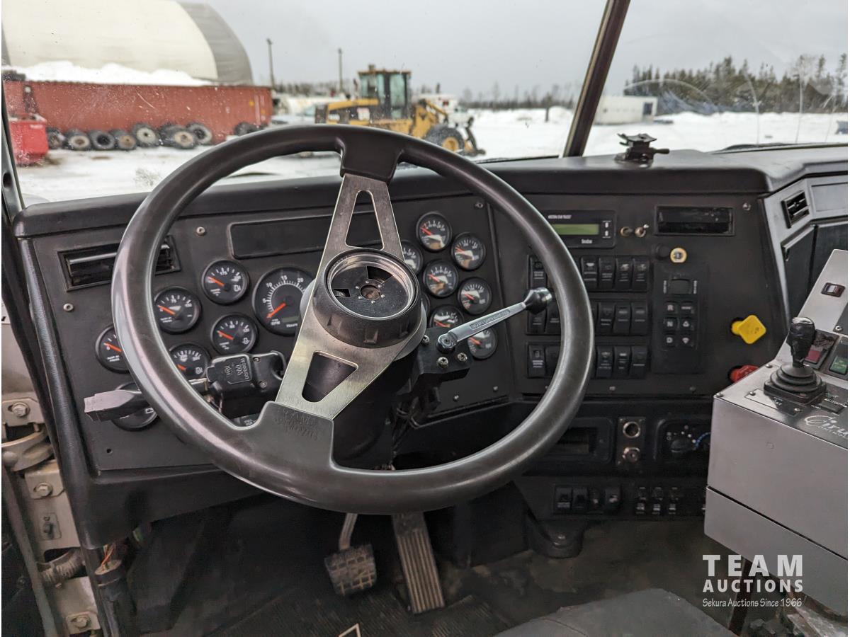 Detroit 15.6 L 6 cylinder diesel engine, engine brake, engine block heater, automatic transmission, A/C, cruise control, radio, heated sander box, mid plow, air ride suspension, 20,000 lb front axle, 66,000 lb rear axles, 3 way diff locks, 318 inch WB, all aluminum wheels, 425/65R22.5 front tires, 11R24.5 rear tires