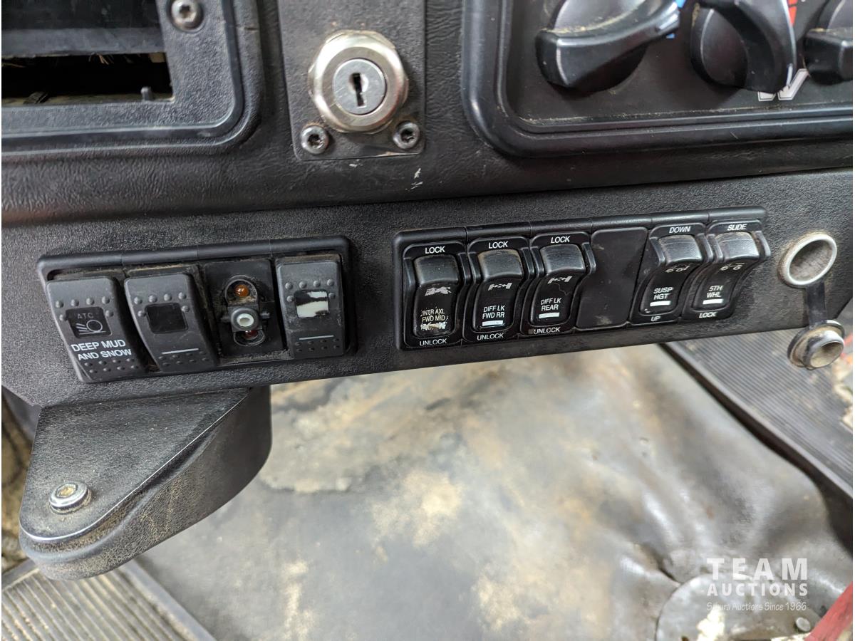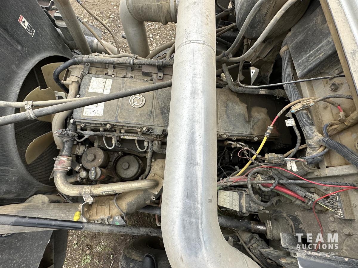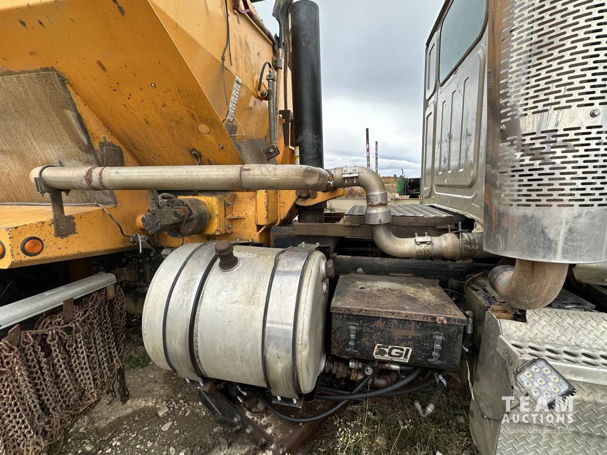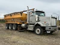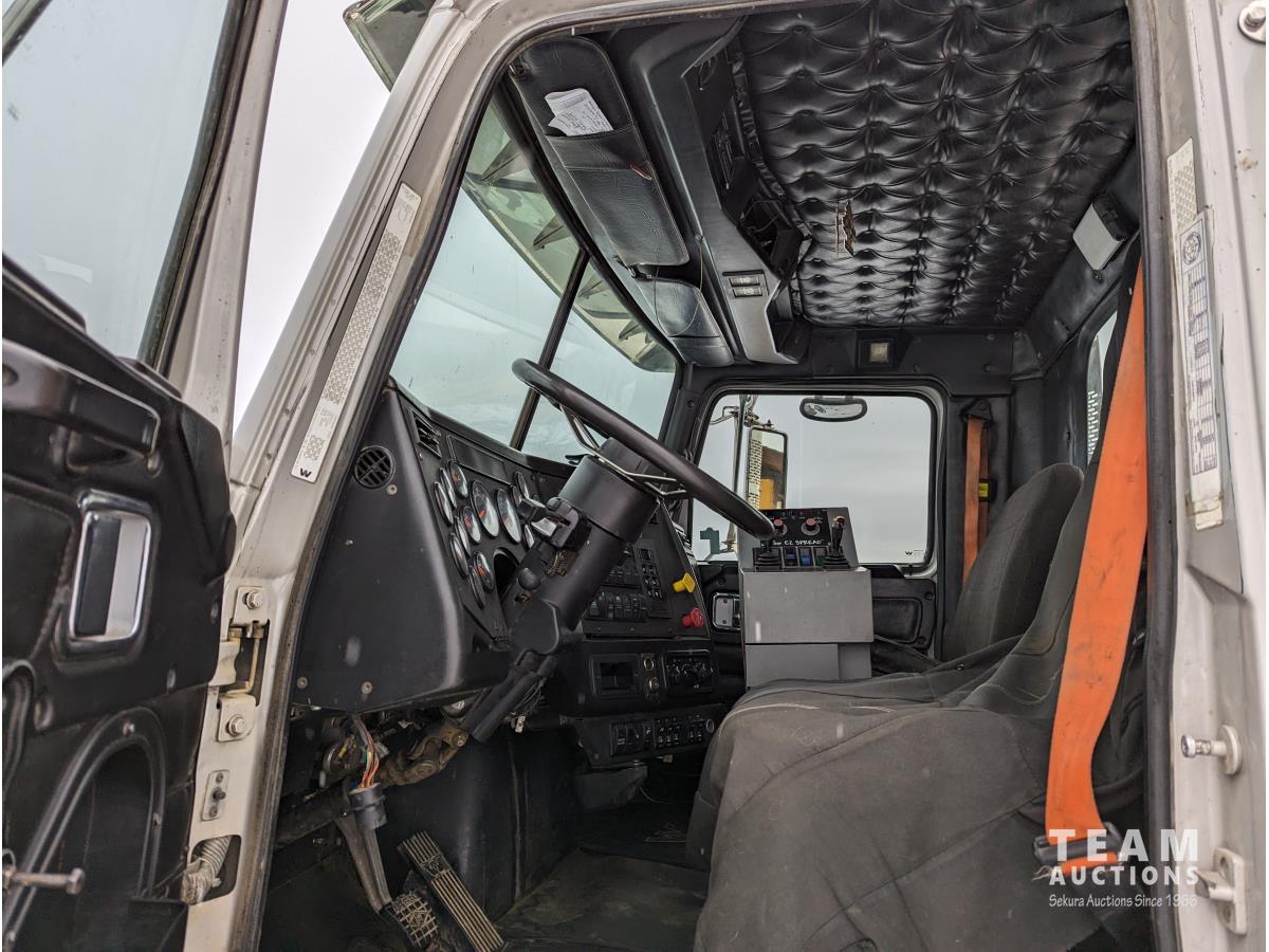Detroit 15.6 L 6 cylinder diesel engine, engine brake, engine block heater, automatic transmission, A/C, cruise control, radio, heated sander box, mid plow, air ride suspension, 20,000 lb front axle, 66,000 lb rear axles, 3 way diff locks, 318 inch WB, all aluminum wheels, 425/65R22.5 front tires, 11R24.5 rear tires