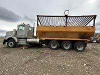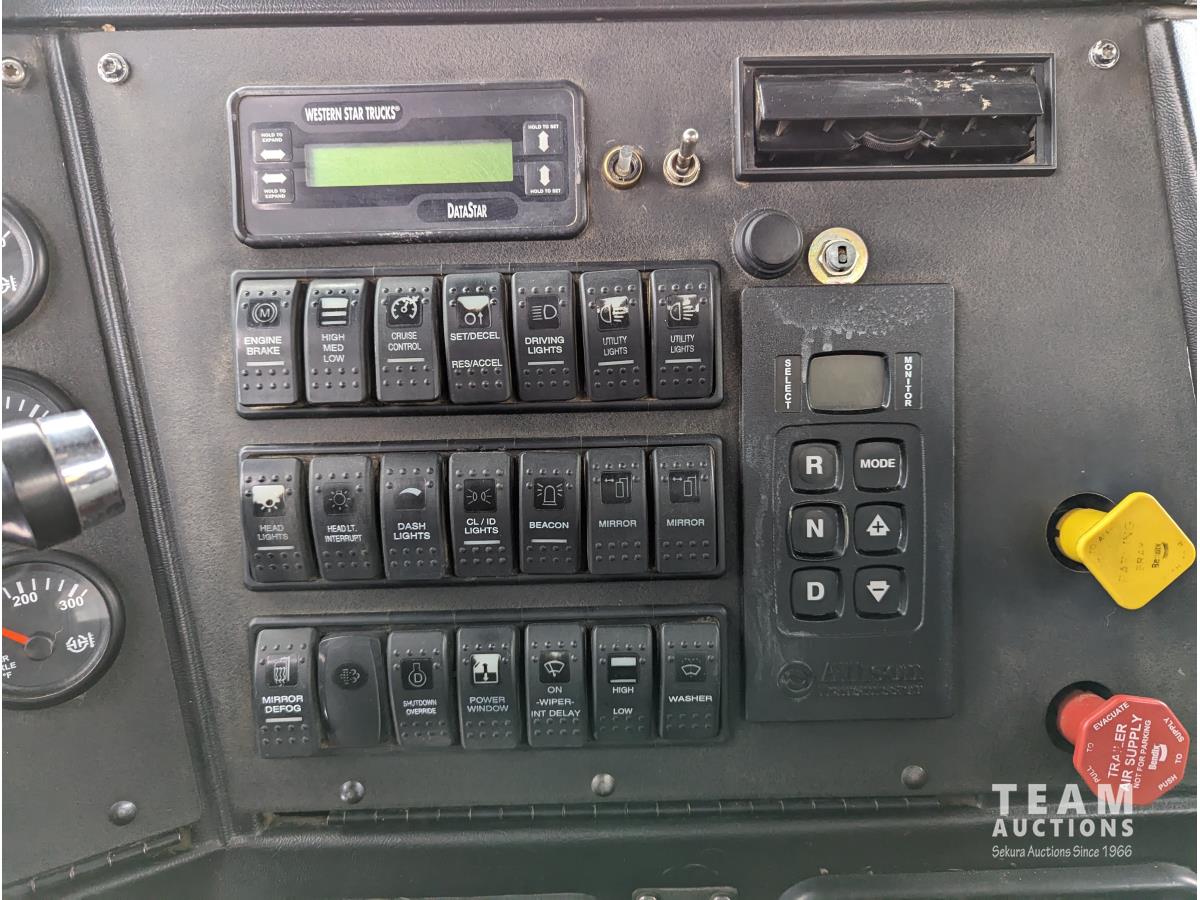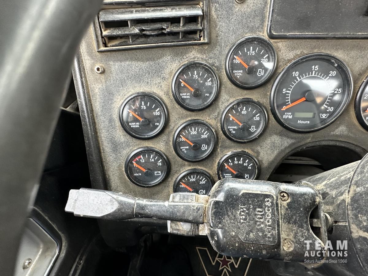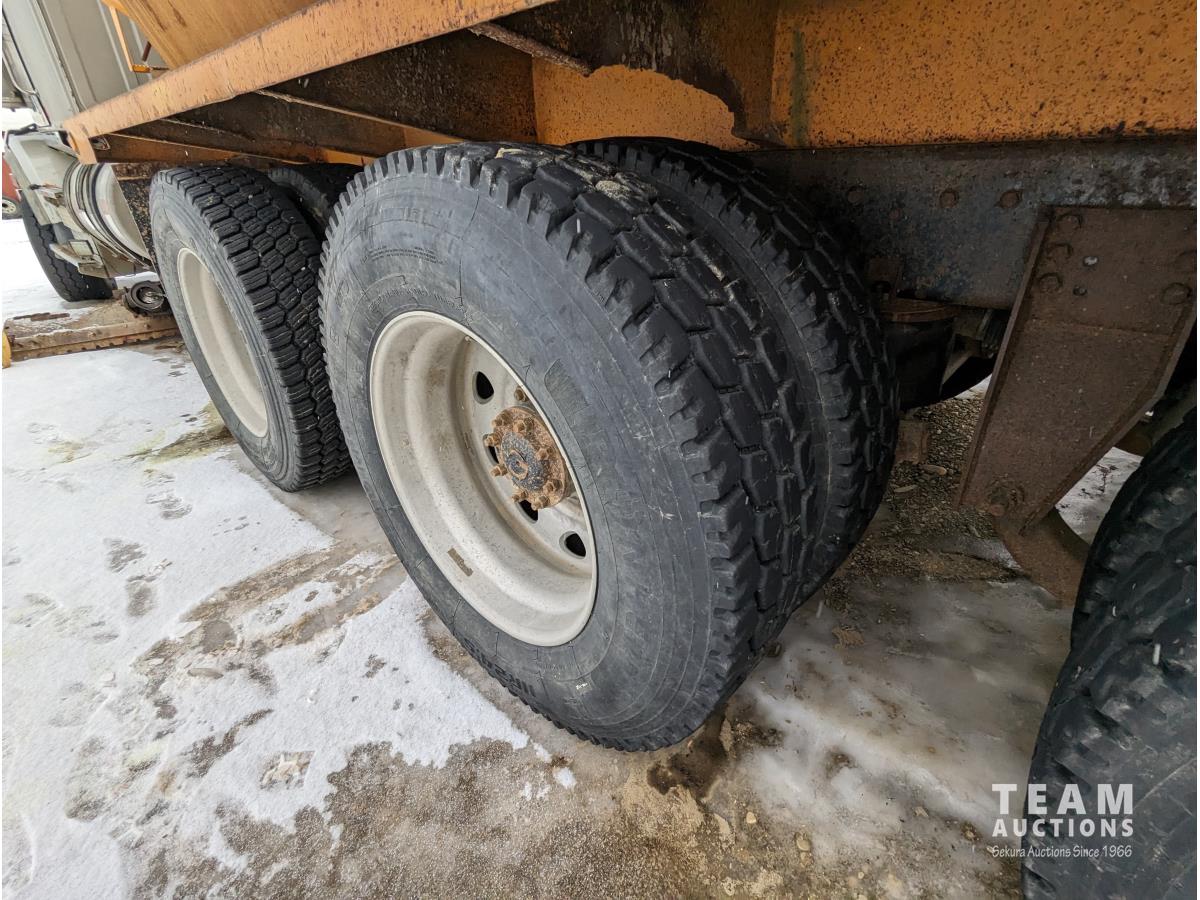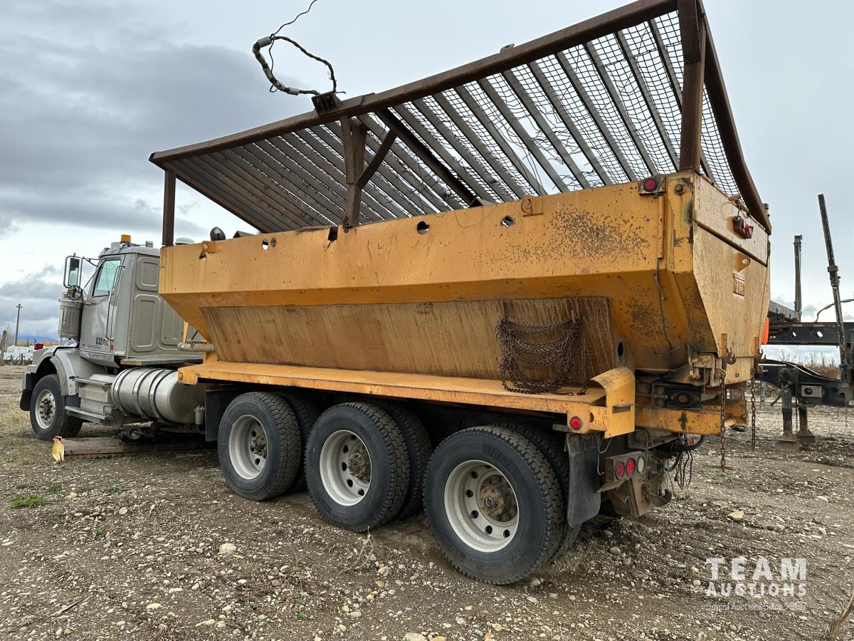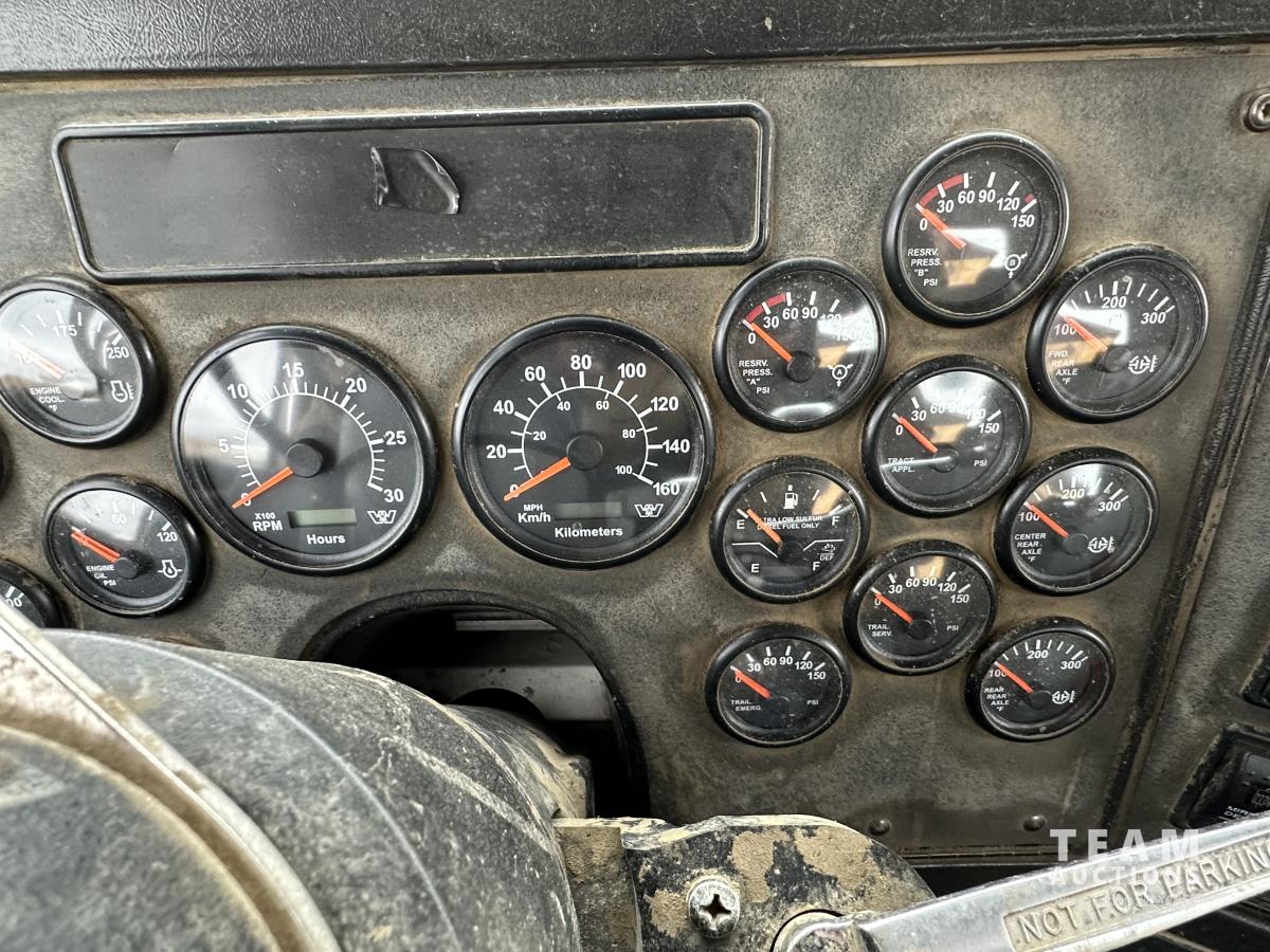 Detroit 15.6 L 6 cylinder diesel engine, engine brake, engine block heater, automatic transmission, A/C, cruise control, radio, heated sander box, mid plow, air ride suspension, 20,000 lb front axle, 66,000 lb rear axles, 3 way diff locks, 318 inch WB, all aluminum wheels, 425/65R22.5 front tires, 11R24.5 rear tires