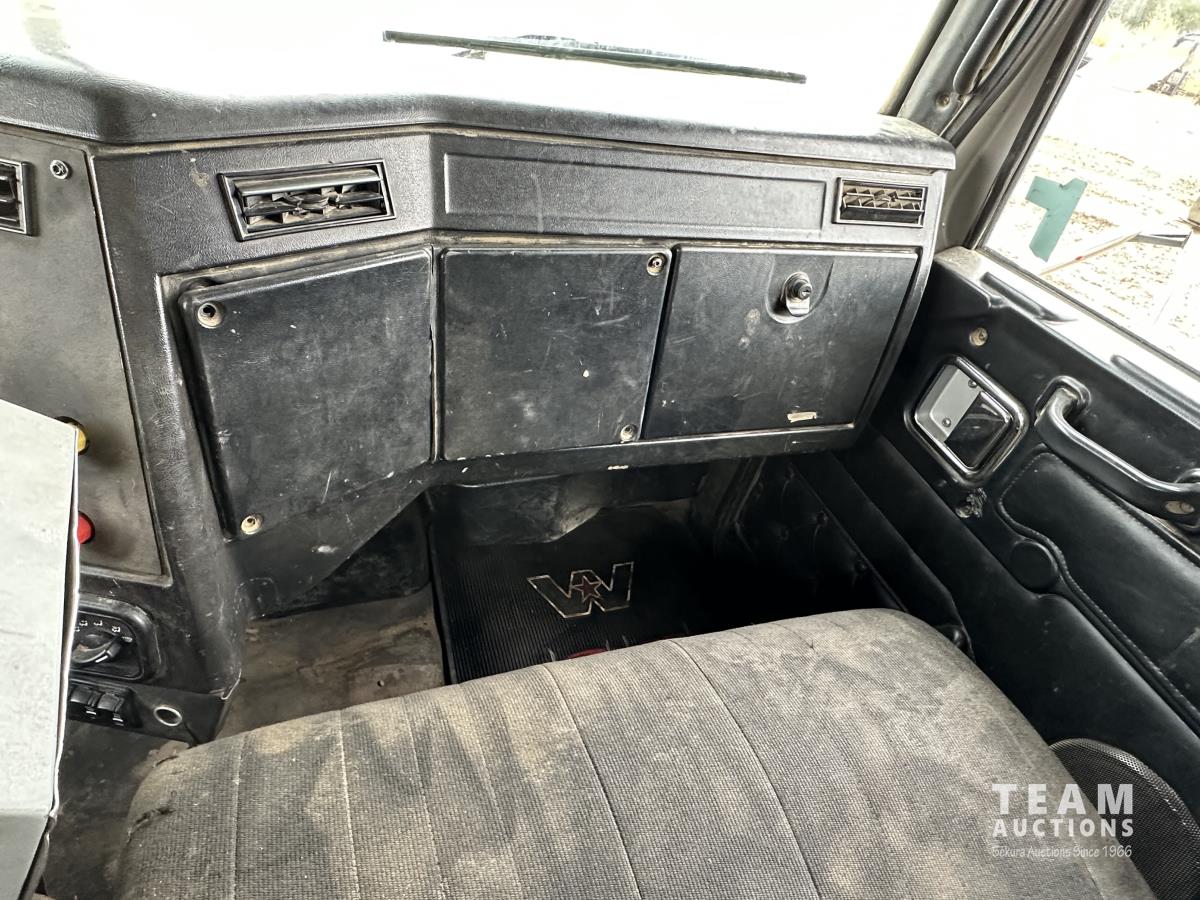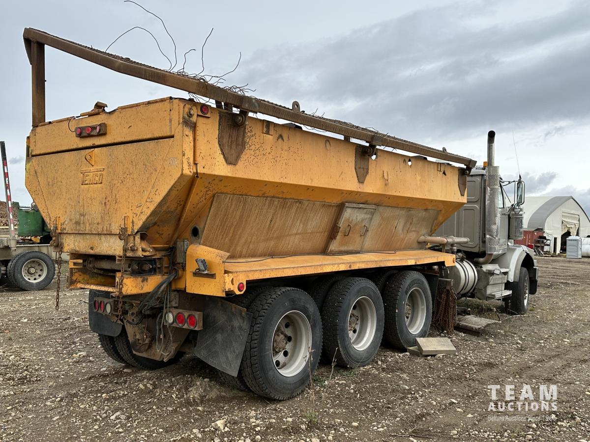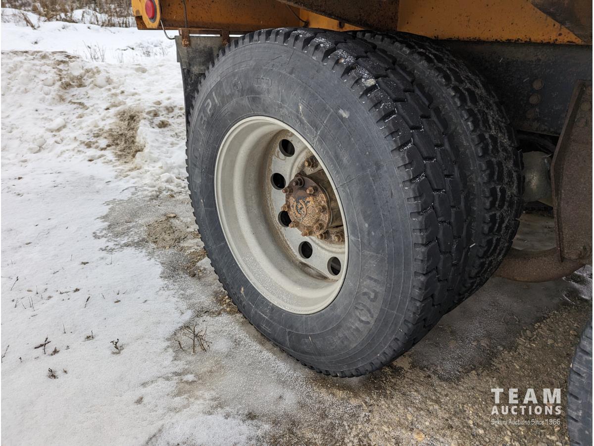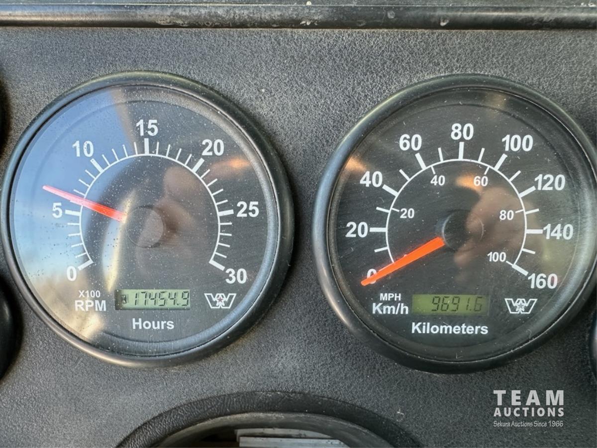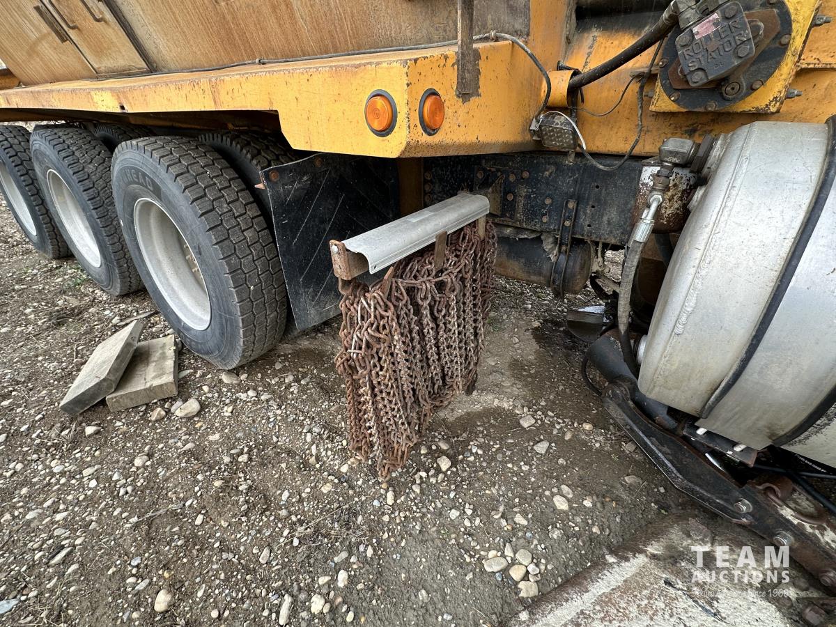 Detroit 15.6 L 6 cylinder diesel engine, engine brake, engine block heater, automatic transmission, A/C, cruise control, radio, heated sander box, mid plow, air ride suspension, 20,000 lb front axle, 66,000 lb rear axles, 3 way diff locks, 318 inch WB, all aluminum wheels, 425/65R22.5 front tires, 11R24.5 rear tires