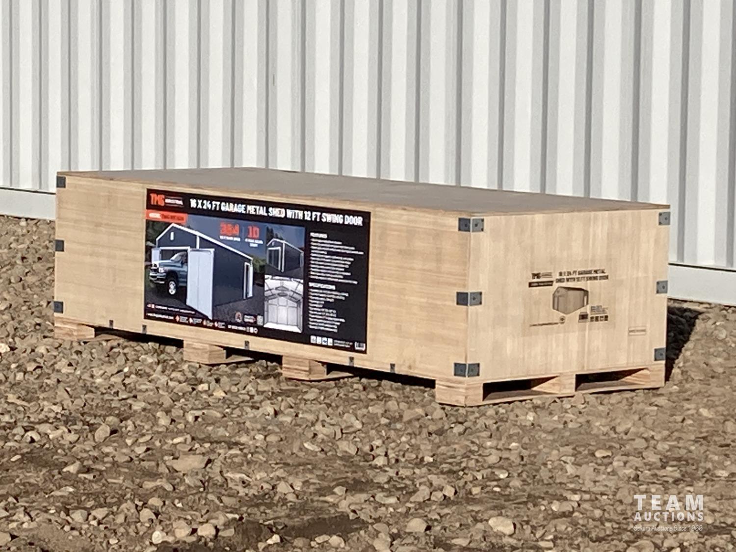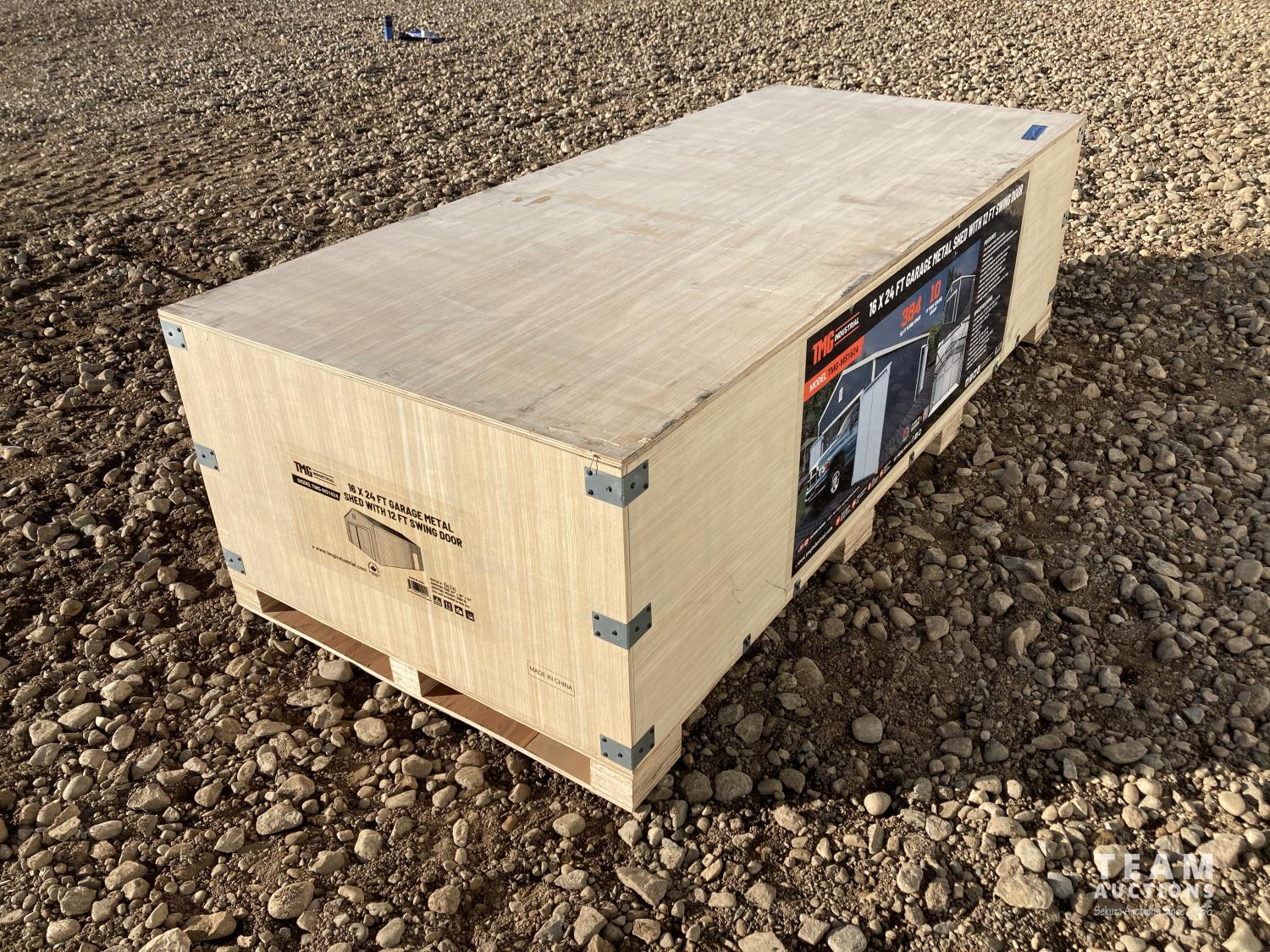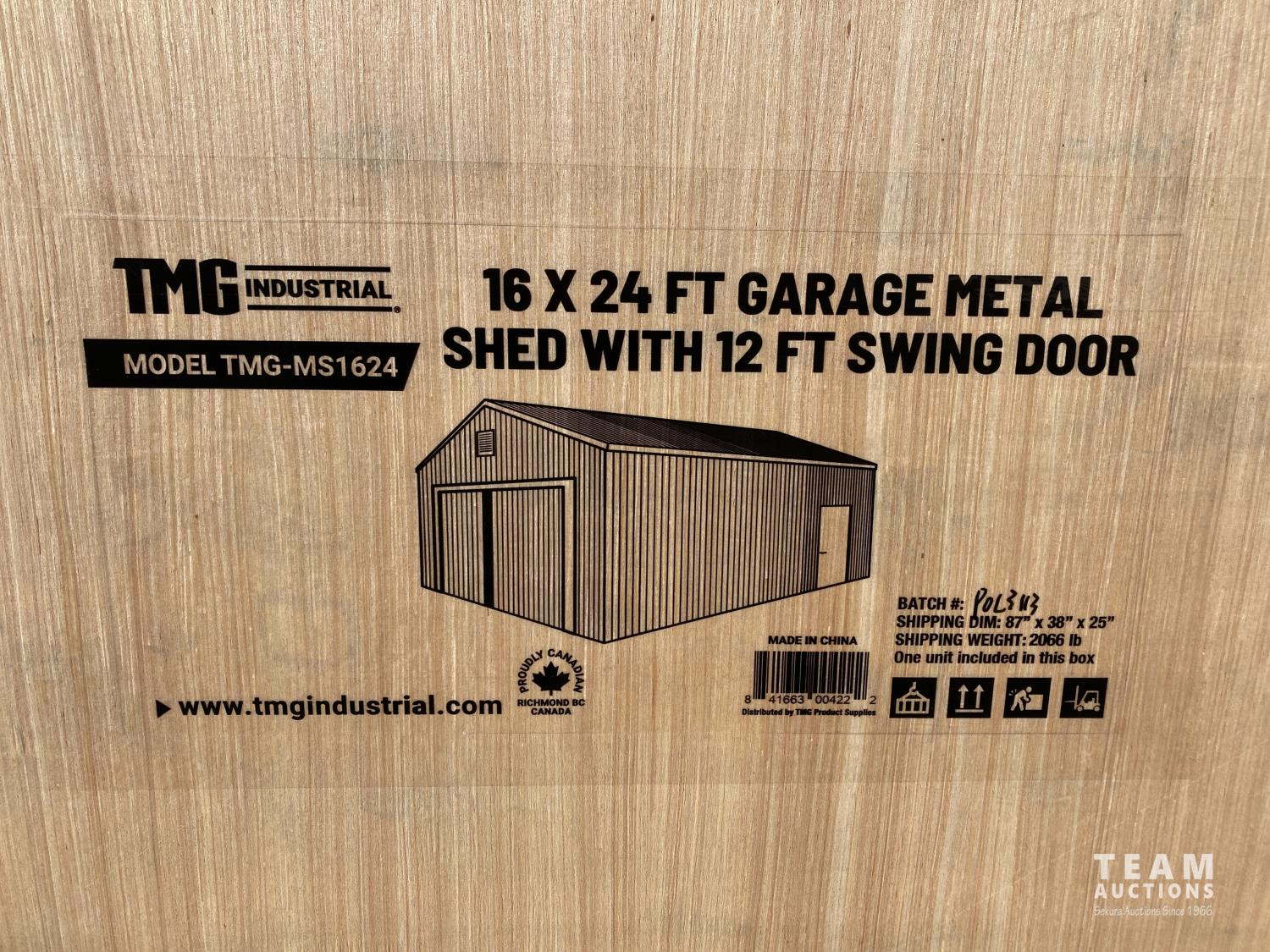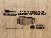 113 TMG Industrial MS1624 16 X 24 Ft Metal Shed/Garage (Unused)