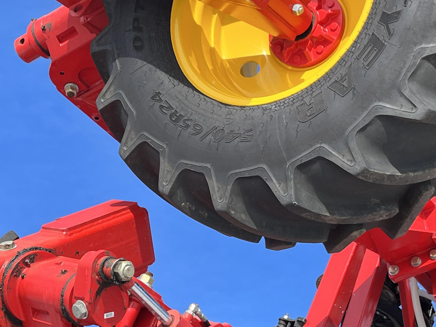 12 inch spacing, double shoot openers, 4.5 inch rubber packers, blockage sensors, Drill control monitors, Novlan Bros disc wing scrapers, 800/65R32 front tires, 16.5L-16.1FI rear tires, 540/65R24 wing tires, Ipad with blockage sensor software included, was paired with tow behind New Holland P4760 Air Cart, 9000 acres seeded