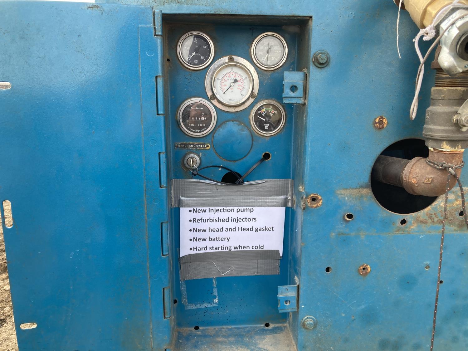As per customer: new injection pump, refurbished injectors, new head, new head gasket, new battery. Hard starting when cold.