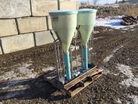 13 inch X 48 inch stainless steel trough, 24 inch diameter hoppers