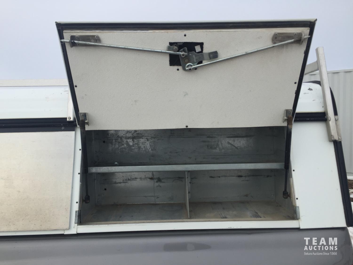 5.3 L, V8, gas, automatic transmission, P/W, P/L, A/C, 7 ft box, aluminum commercial truck cap - 7 ft. long x 69 inches wide x 45 inches high, 4 outer storage cabinets w/shelves, 265/70R17 tires