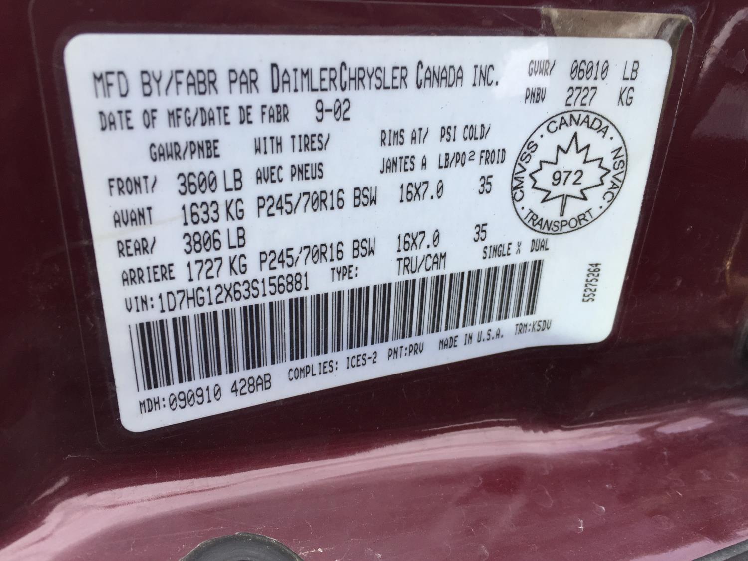 - 1D7HG12X63S156881