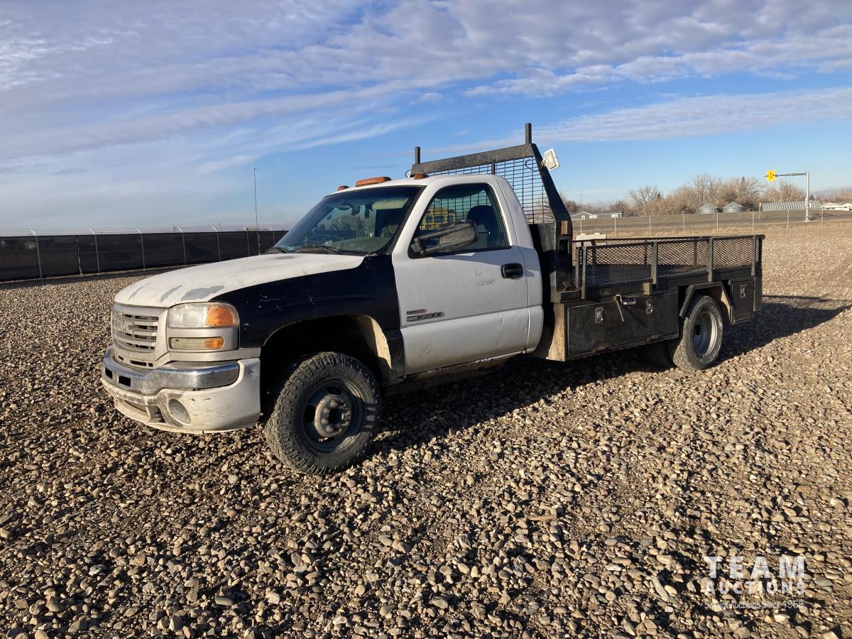 308 2003 GMC Sierra 3500 4X4 Regular Cab Dually Flat Deck Truck (Inoperable)