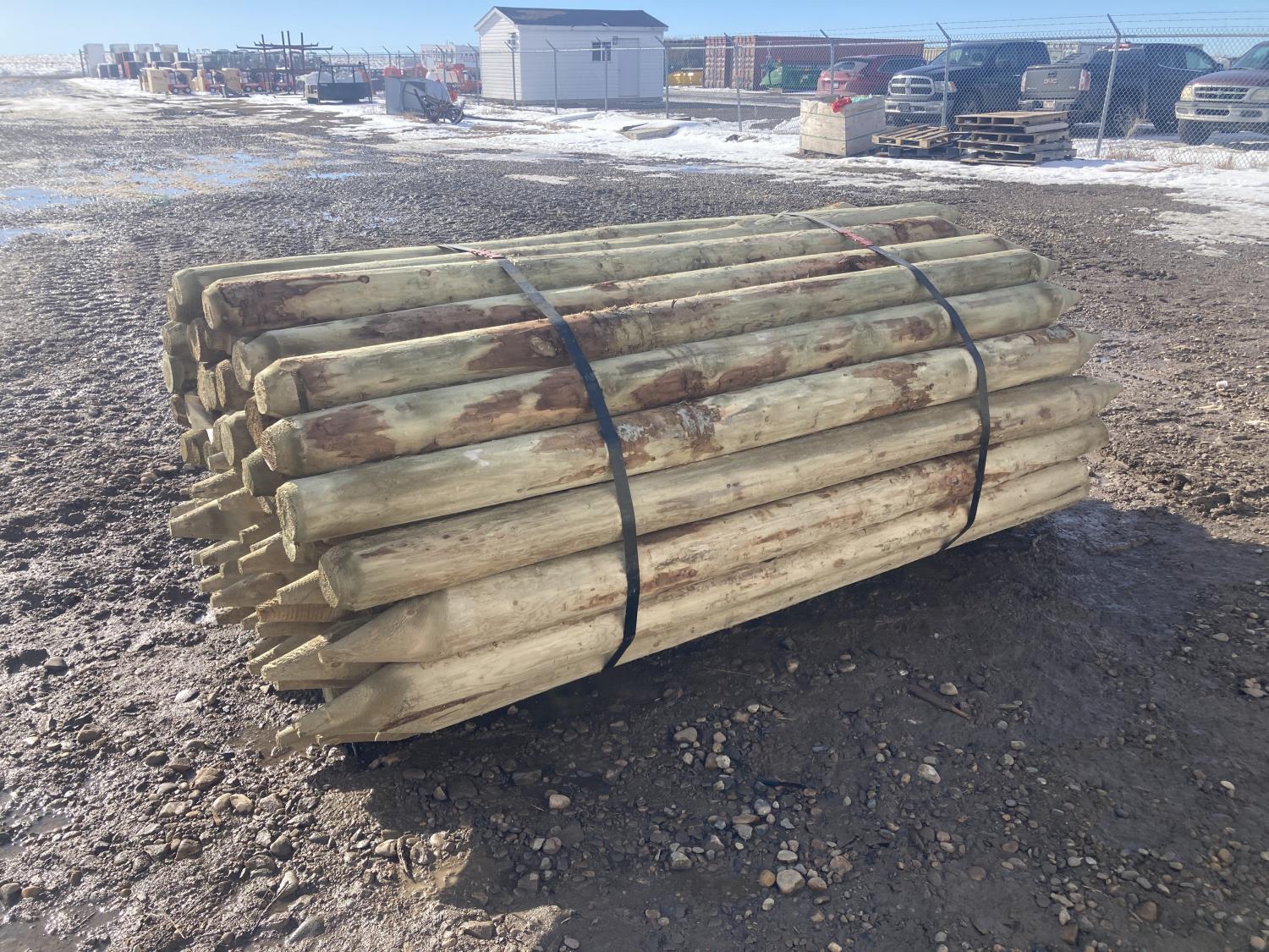 92 (70) 4 - 5 Inch X 8 Ft Treated Fence Posts (Unused)