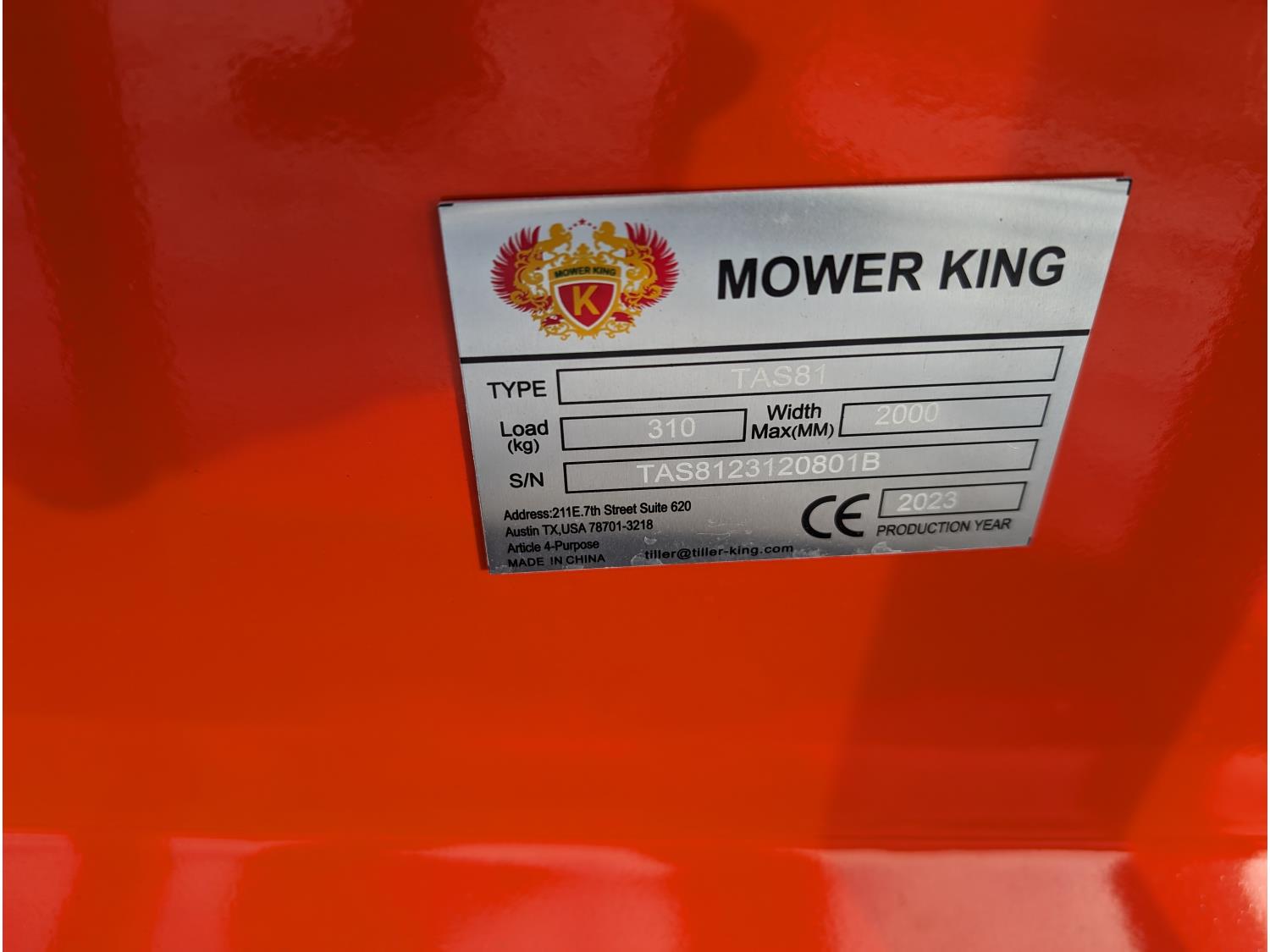 417 2023 Mower King TAS81 83 Inch Rotary Tiller Attachment (Unused)