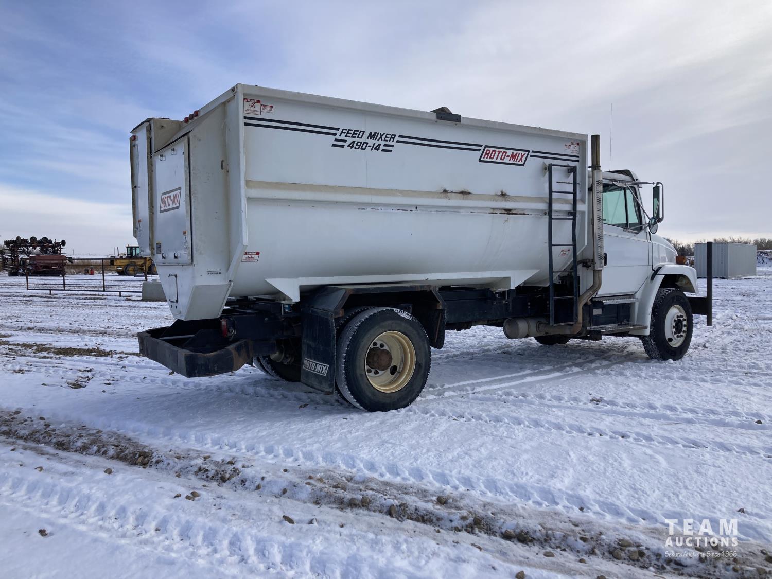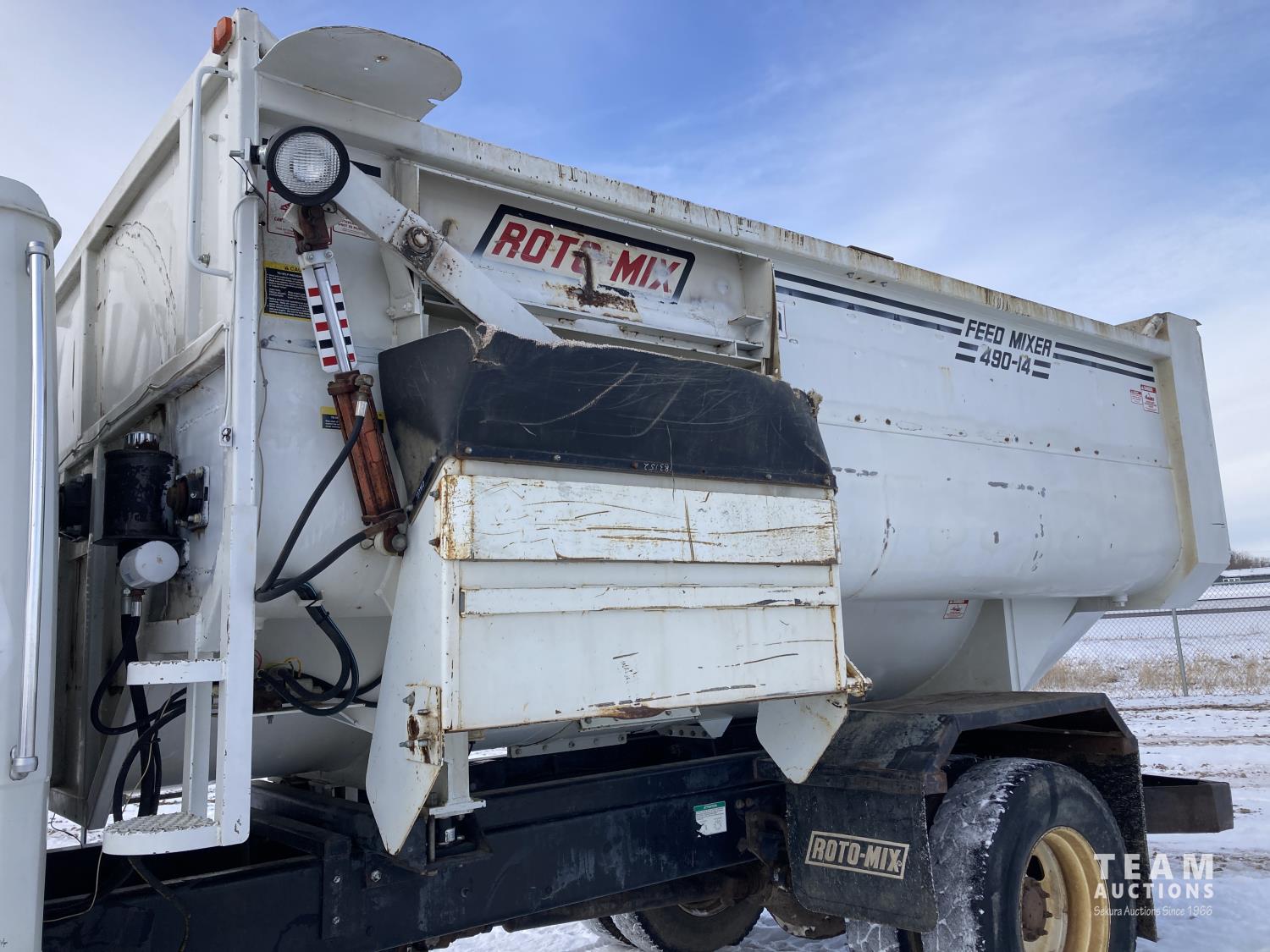 Cummins 5.9l L6 210 HP engine, automatic transmission, spring suspension, air brakes, 192 inch WB, 12,000 lb. front axle, 23,000 lb. rear axle, Roto-Mix 490-14 Feed Mixer, 490 cu. ft. capacity, DigiStar CT30KTC scales, 164 inch x 102 inch box, 11R22.5, Left Hand Discharge, Staggered Rotor, Stainless Steel Liners & 5 Bar Reel