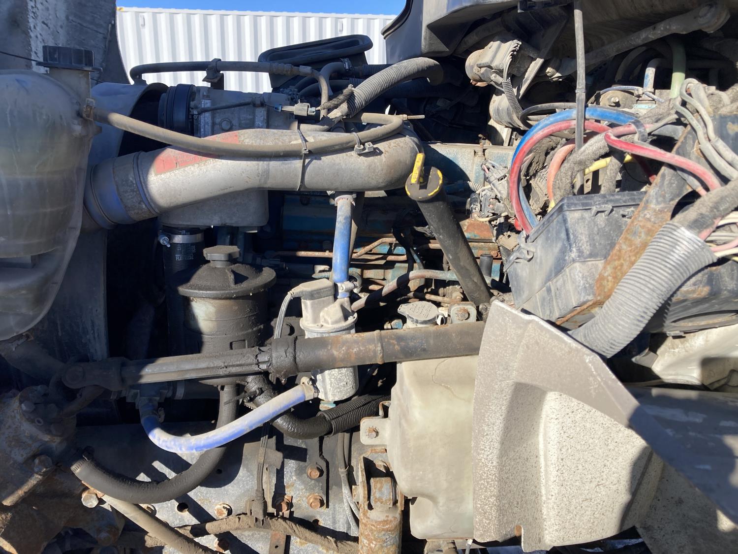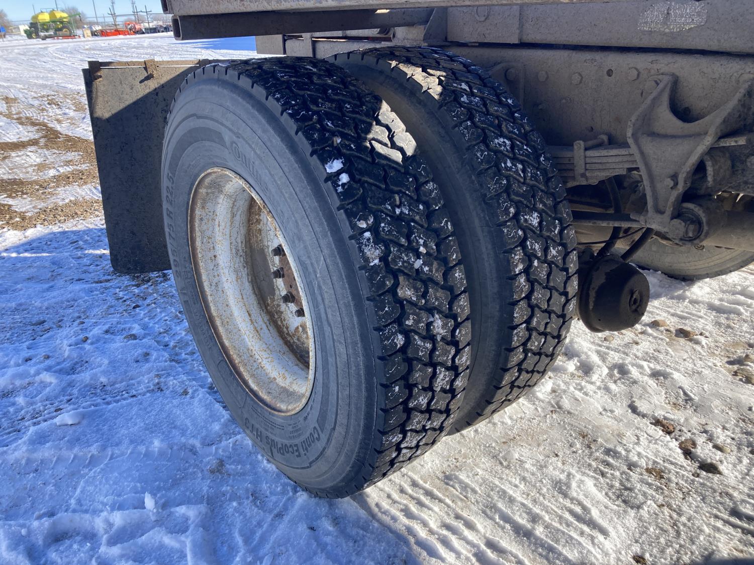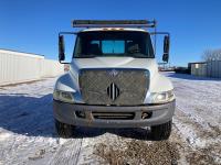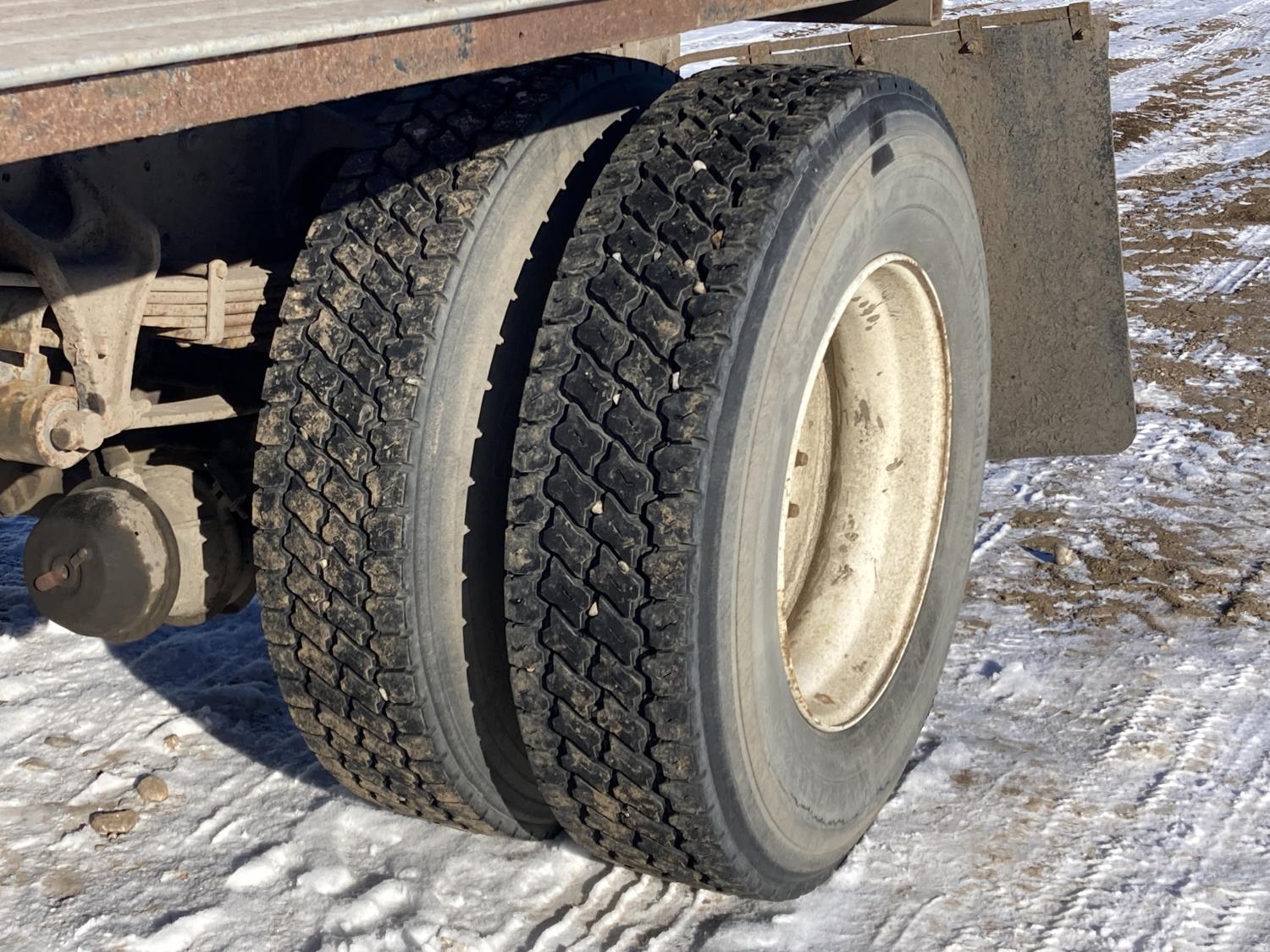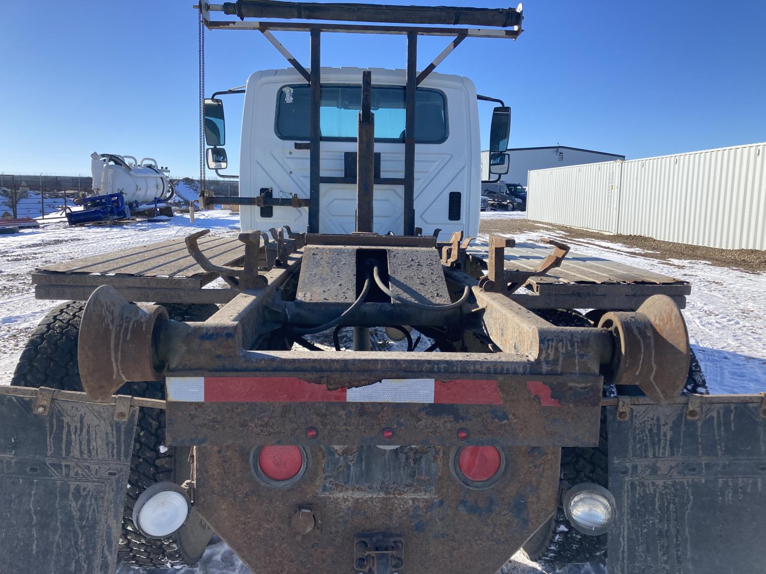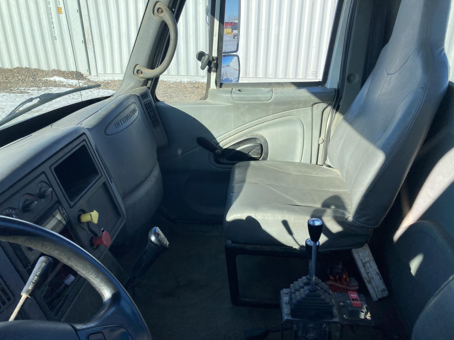 International DT466 7.6 L L6 175 HP diesel engine, electric engine block heater, International 6 PLUS 6 speed manual transmission, A/C, leather interior, air ride driver seat, radio, hydraulic wet kit, 43 inch x 150 inch deck, manual roll tarp, spring suspension, 182 inch WB, 11985 lb front axle, 19976 lb rear axle, 275/80R22.5 front tires, 295/75R22.5 rear tires