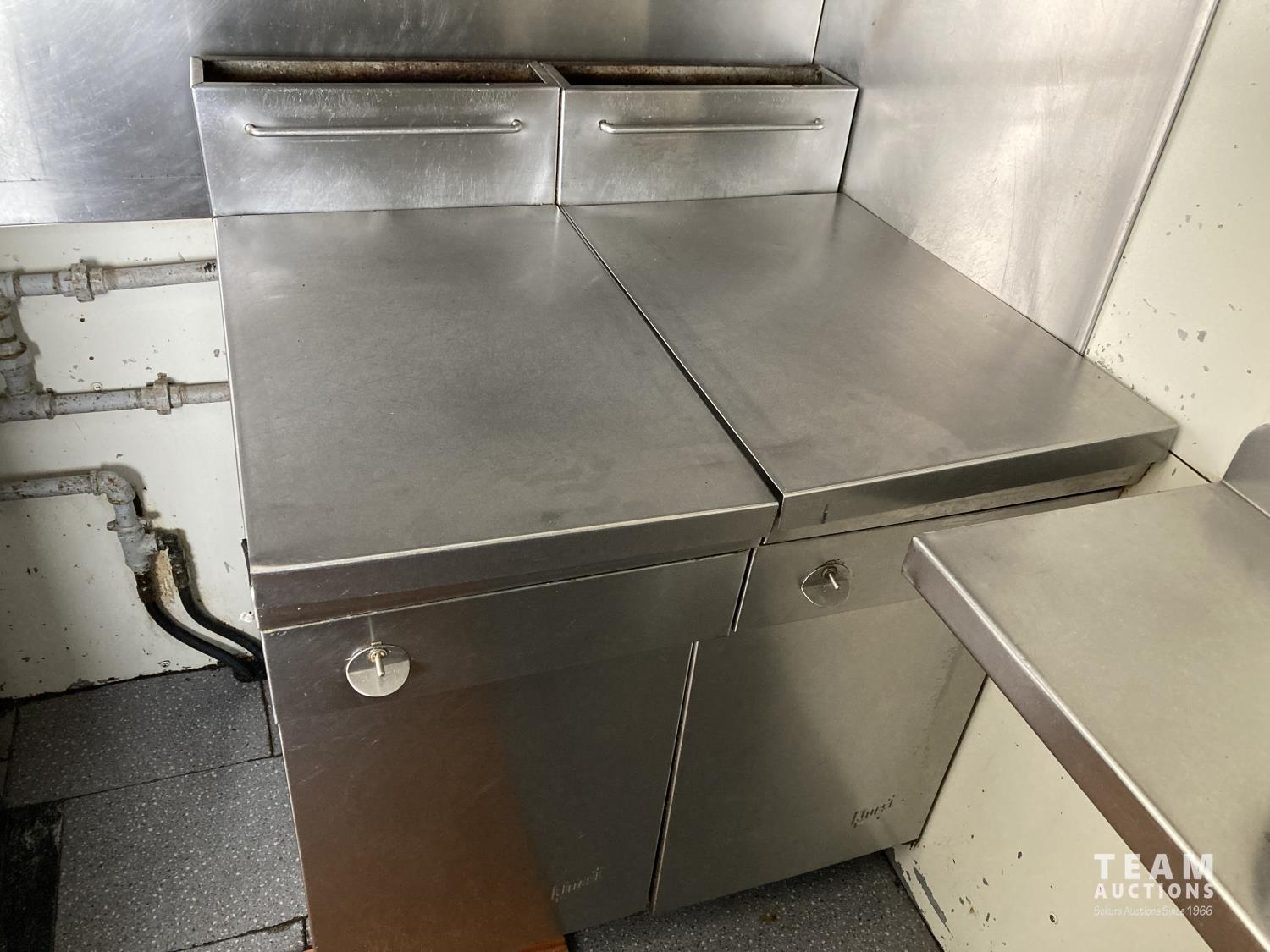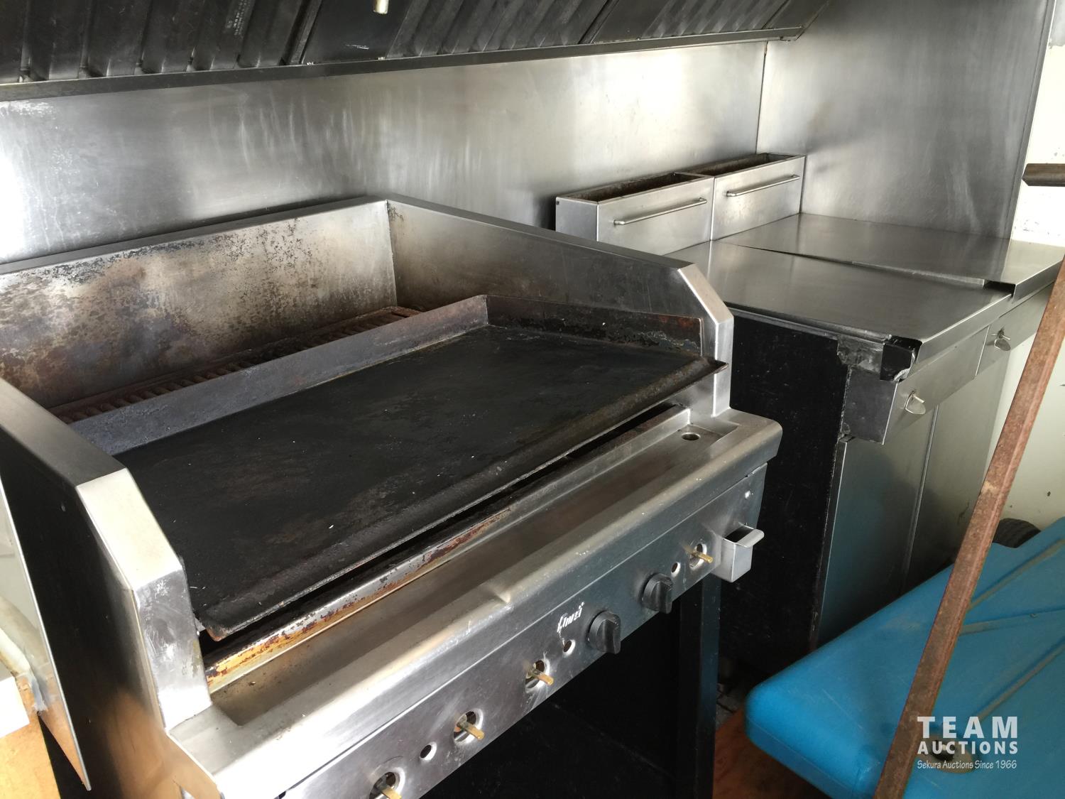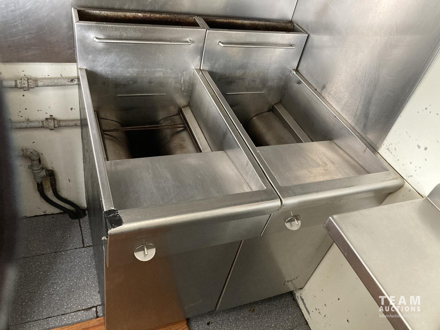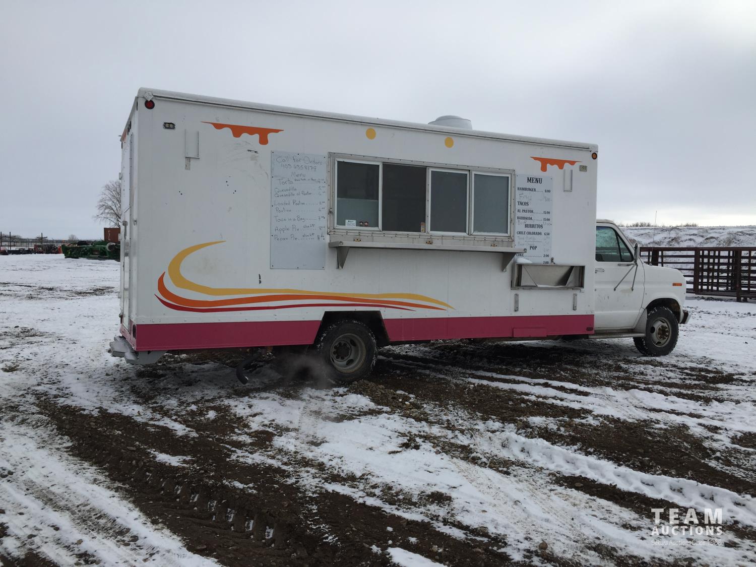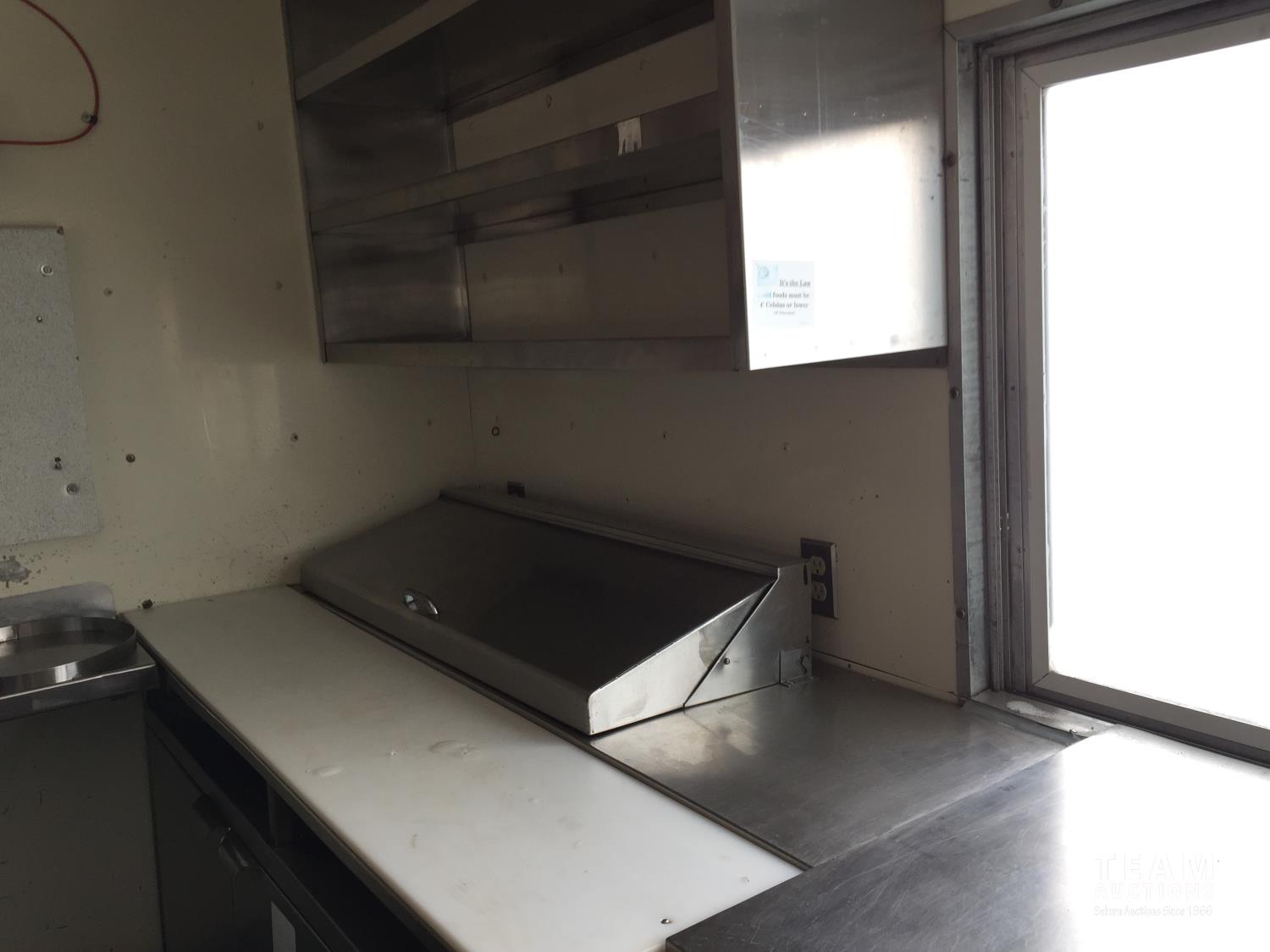 Ford 7.5 L V8 gas engine, 3 speed automatic transmission, radio, 8 ft x 19 ft deck, 19 ft van, 1990 ITB rig up, Honda EV6010 Generator, Pyro-Chem Fire Suppression System, Stainless Steel Work Surfaces, LG Fridge, Quest 2 vat Fryer, Quest Gas Stove, spring suspension, 204 inch WB, 215/85R16 tires