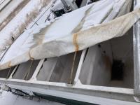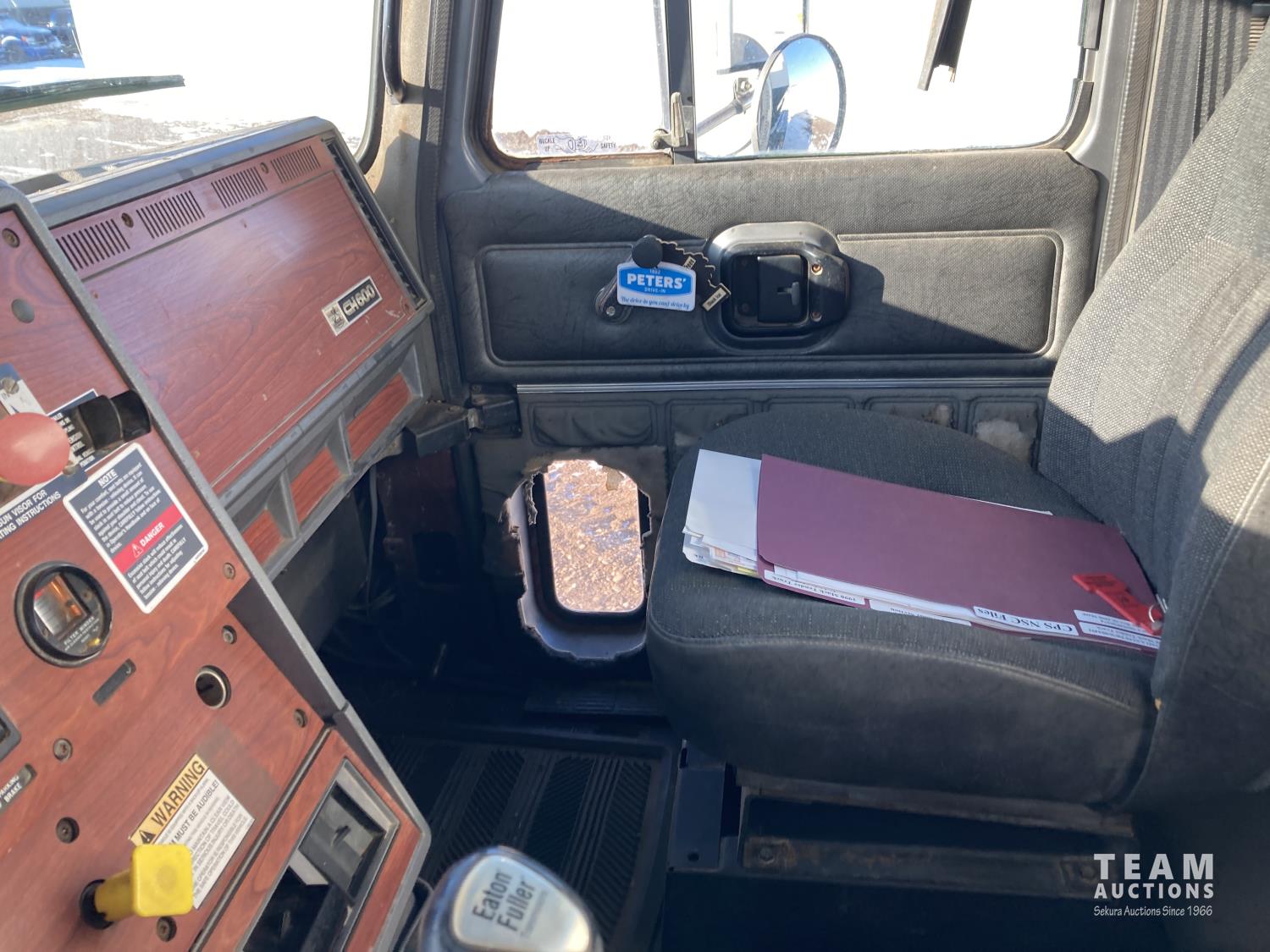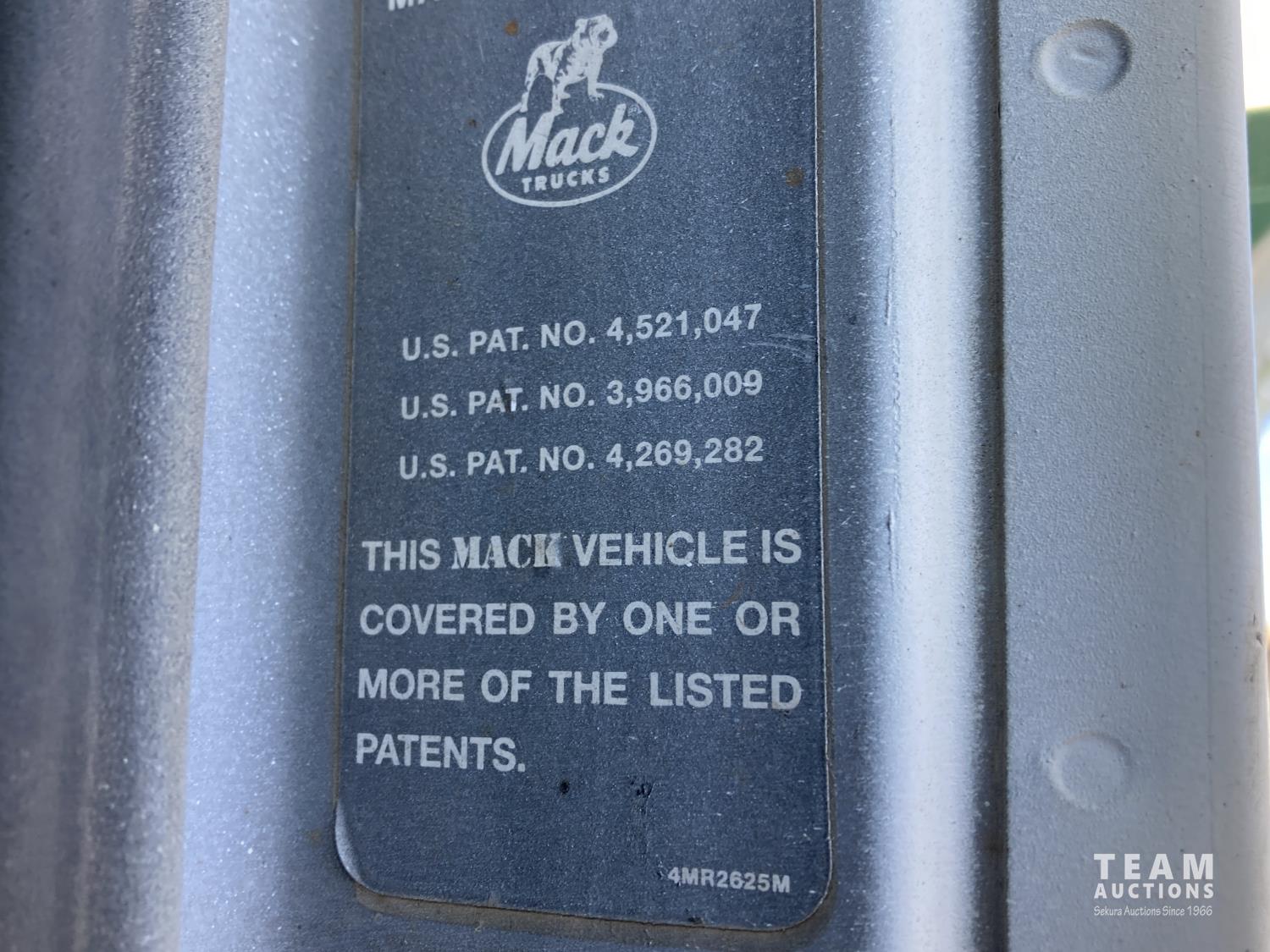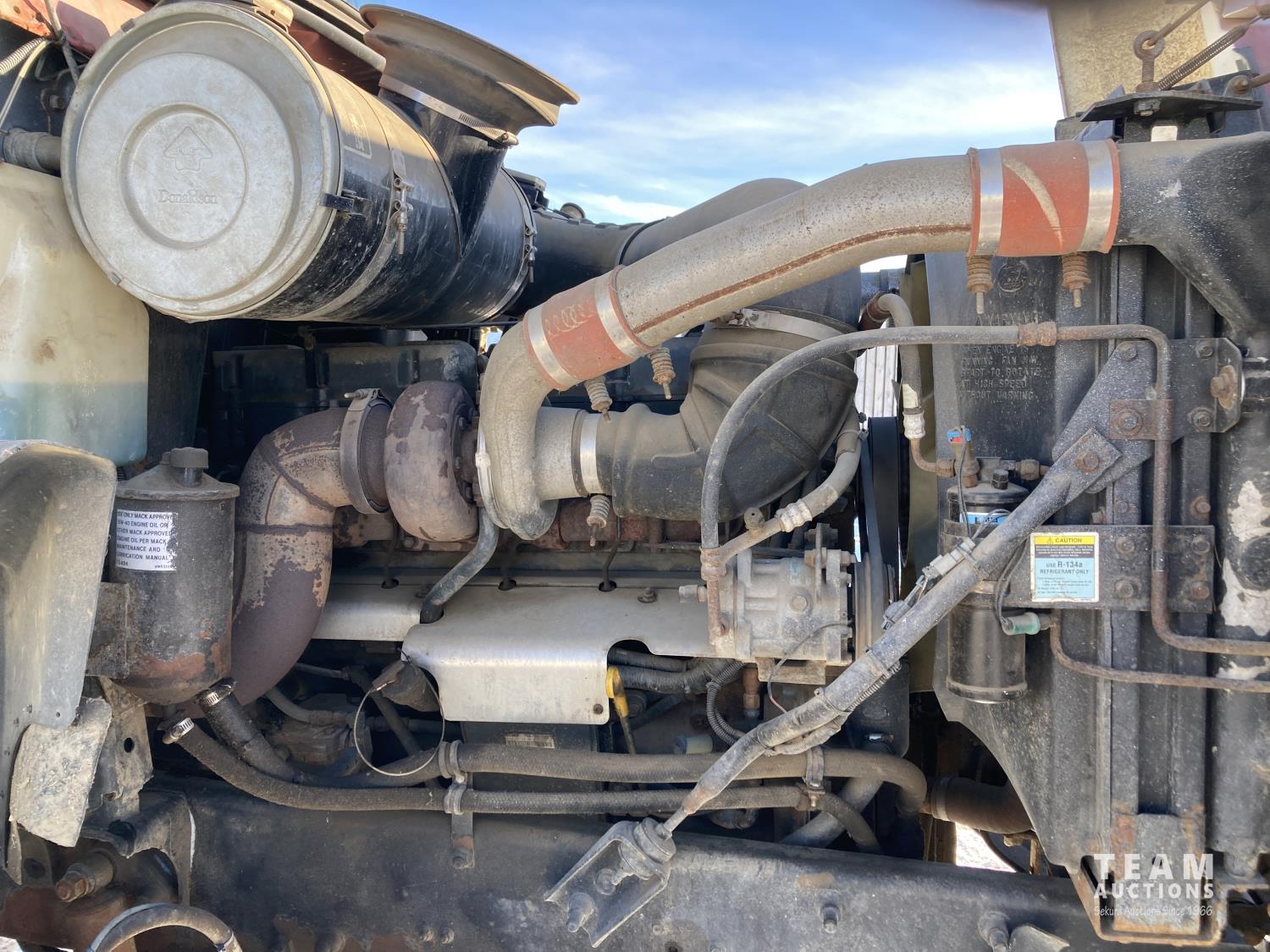 Mack 12 L 6 cylinder 355 HP diesel engine, Eaton Fuller 13 speed manual transmission, A/C, cruise control, air ride driver seat, stereo, hydraulic wet kit, 16 ft x 8 ft box, manual roll tarp, 9.5 inch auger, air ride suspension, 240 inch WB, all aluminum wheels, 315/80R22.5 front tires, 11R22.5 rear tires