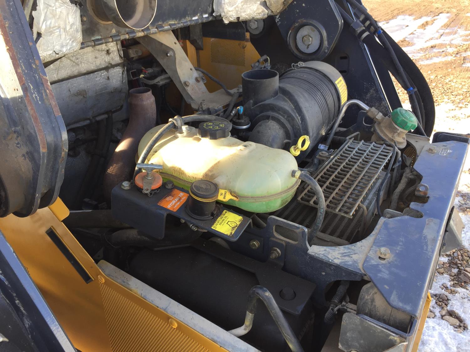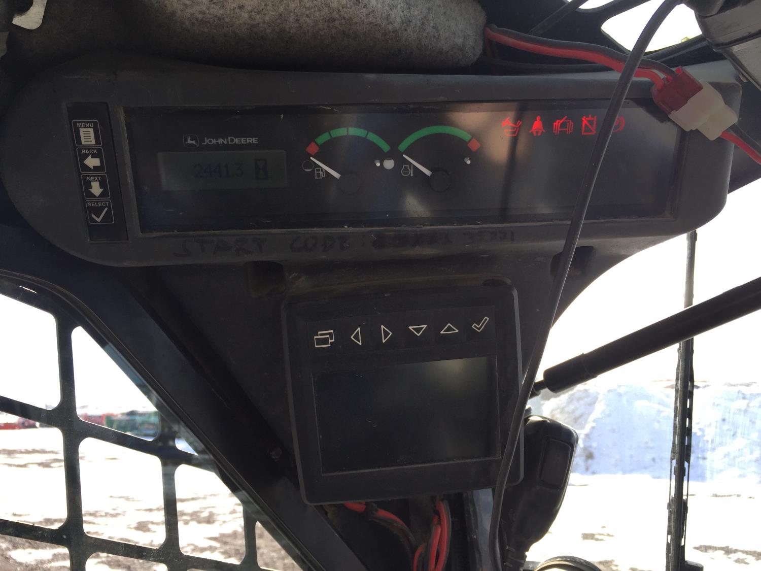 Enclosed cab, pilot controls, rear view cameras, diesel engine, 2 speed transmission, cab screens, hydraulic Q/C coupler, aux hydraulics, 18 inch rubber tracks