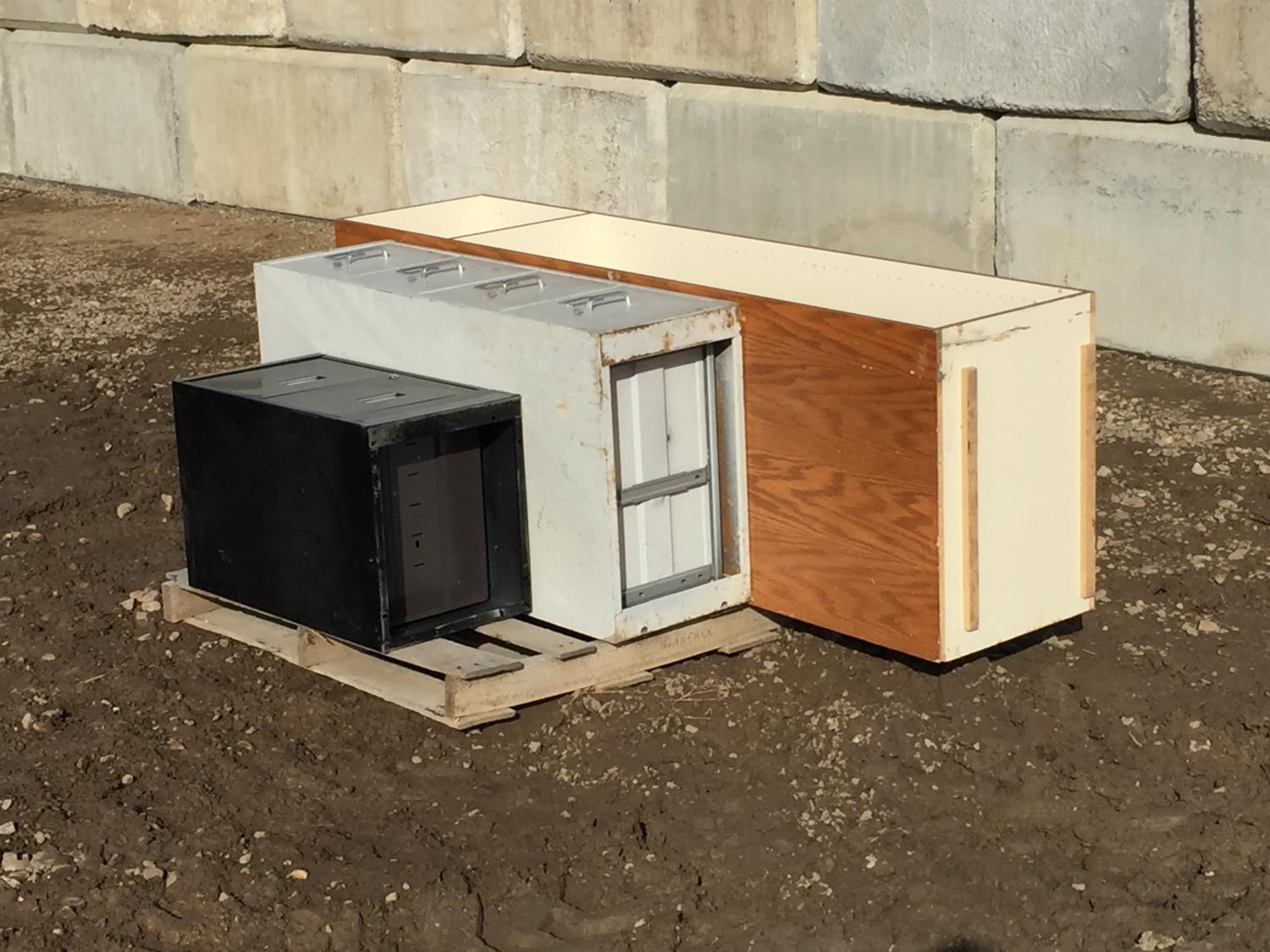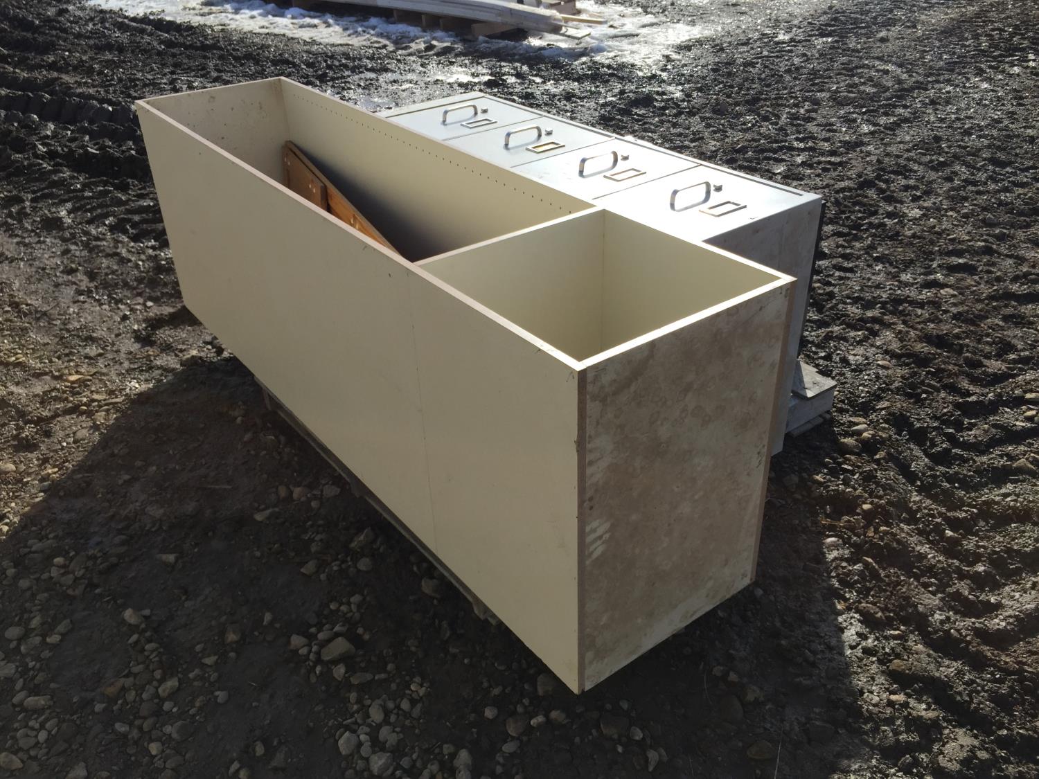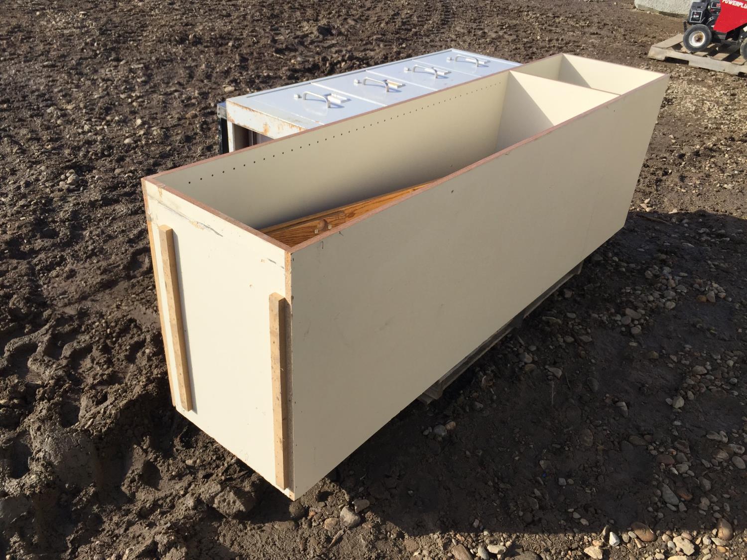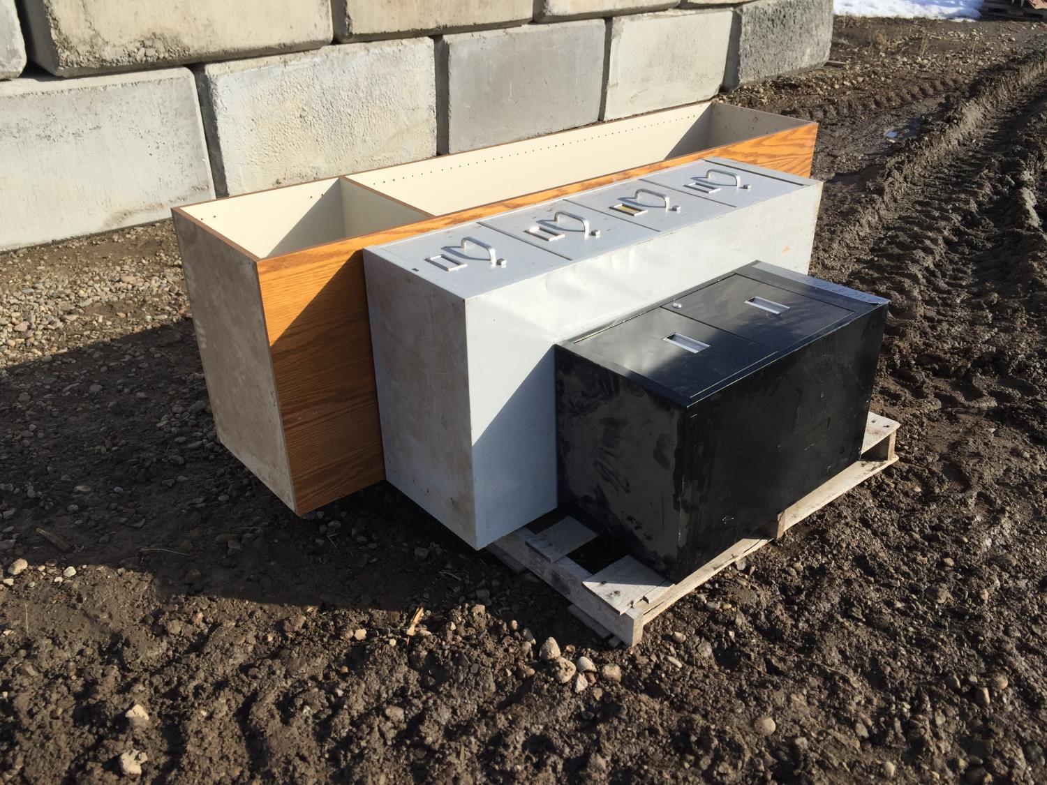 2 drawer filing cabinet 29 inch X 15 inch, 4 drawer filing cabinet 49 inch X 15 inch, storage shelf 79 inch X 18 inch
