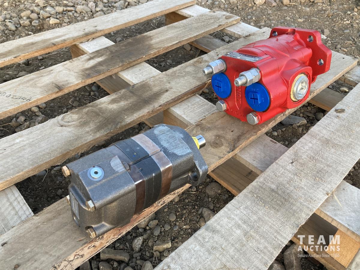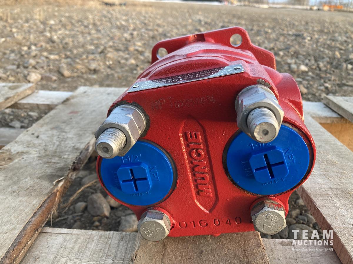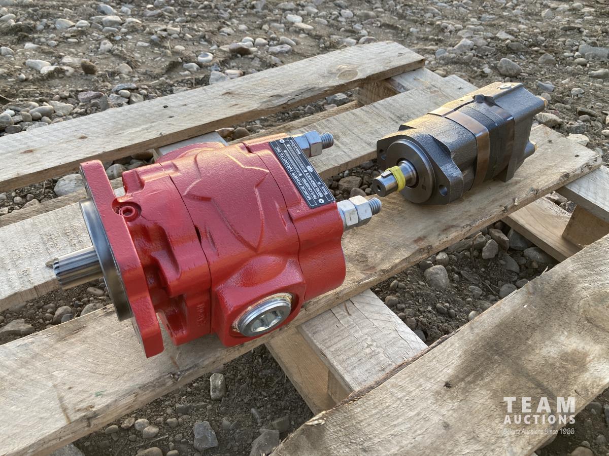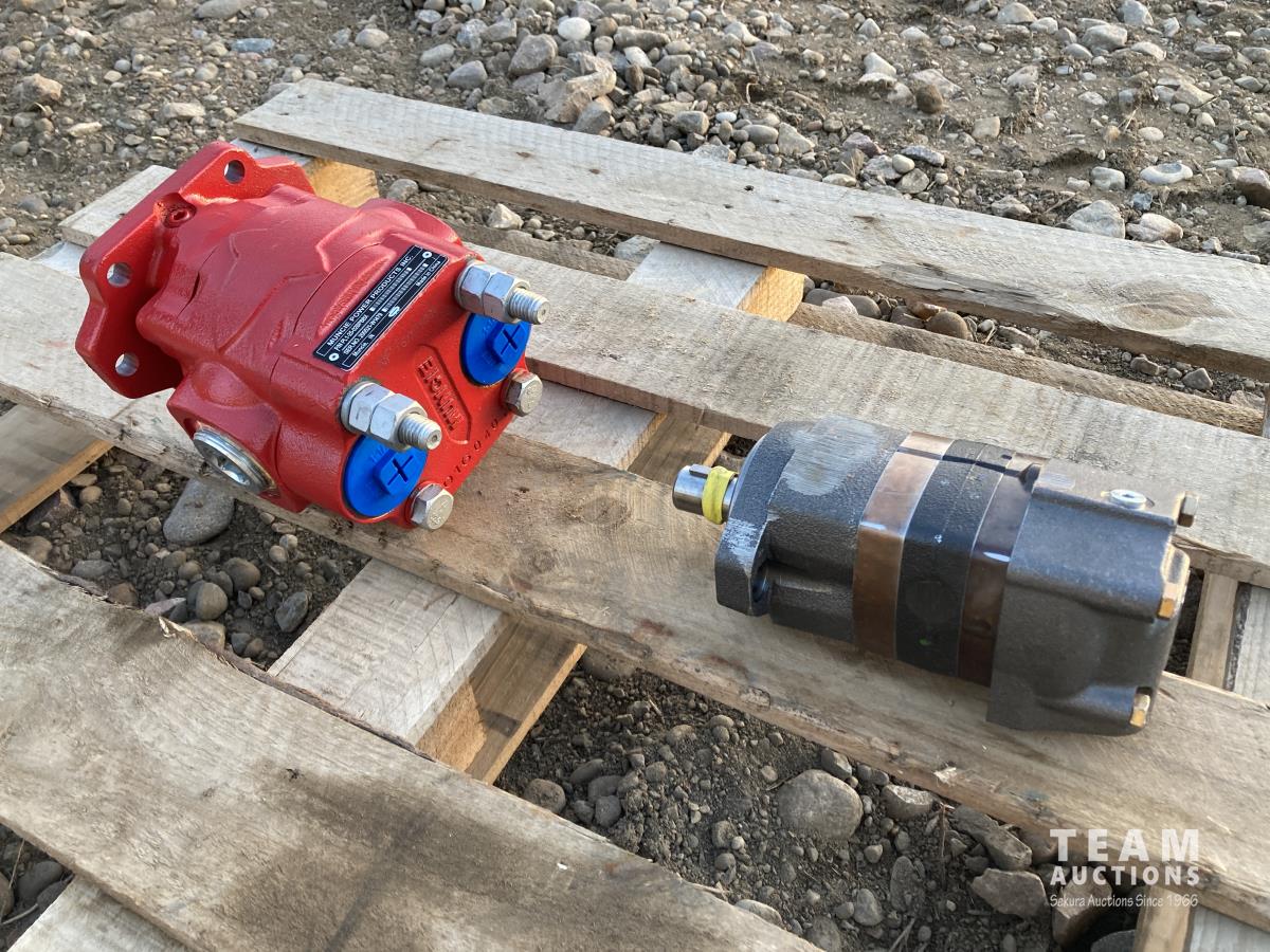 Red motor Muncie Power Products P/N PL1-25-02BPBBX, grey motor P. S. I Fluid Power 104-1004-006