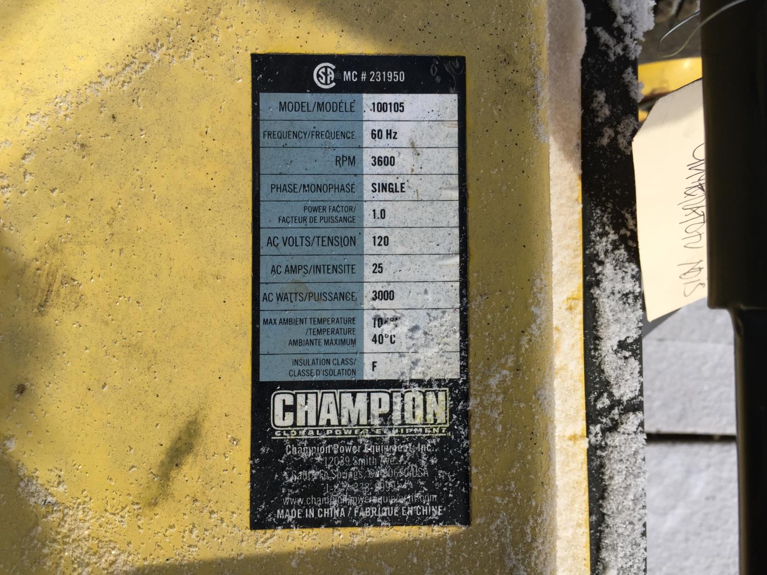 Champion 6500 W, 120/20 V, 60 Hz, single phase - Champion 3000 W, 120 V, 60 Hz, single phase