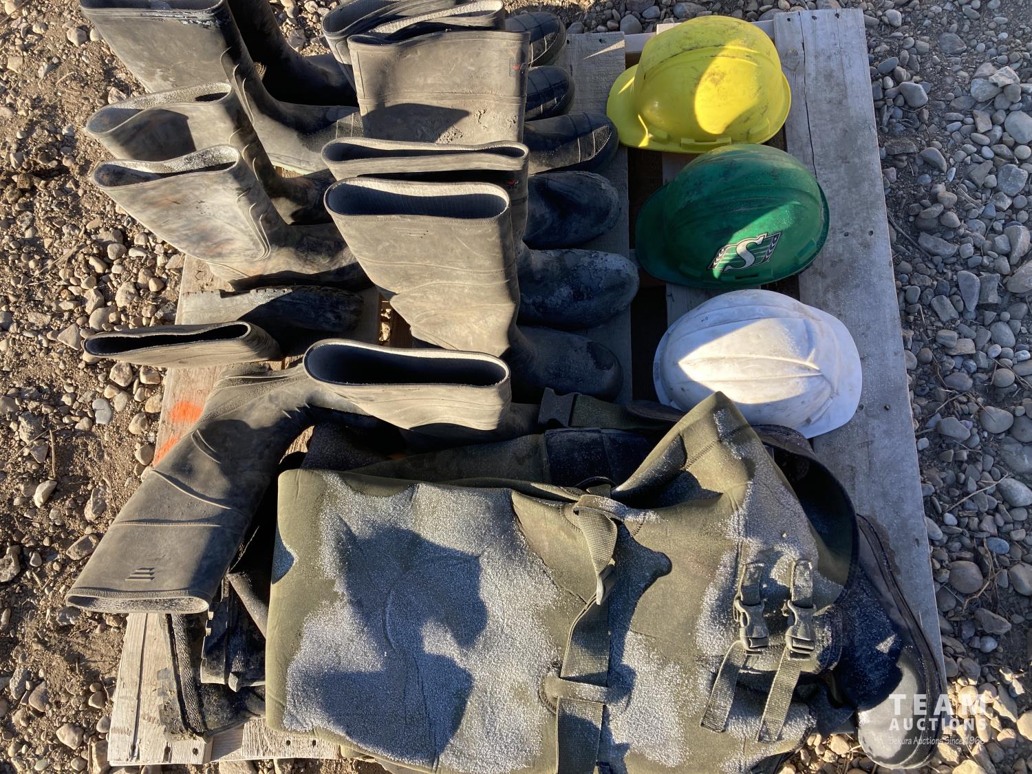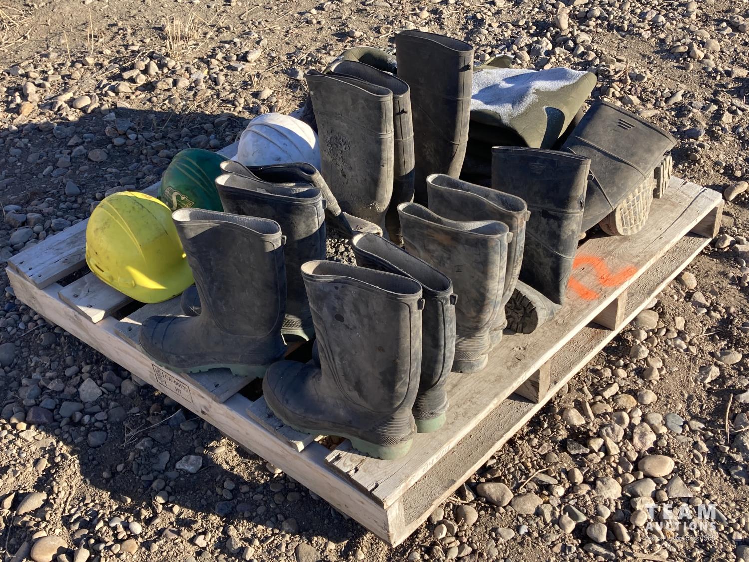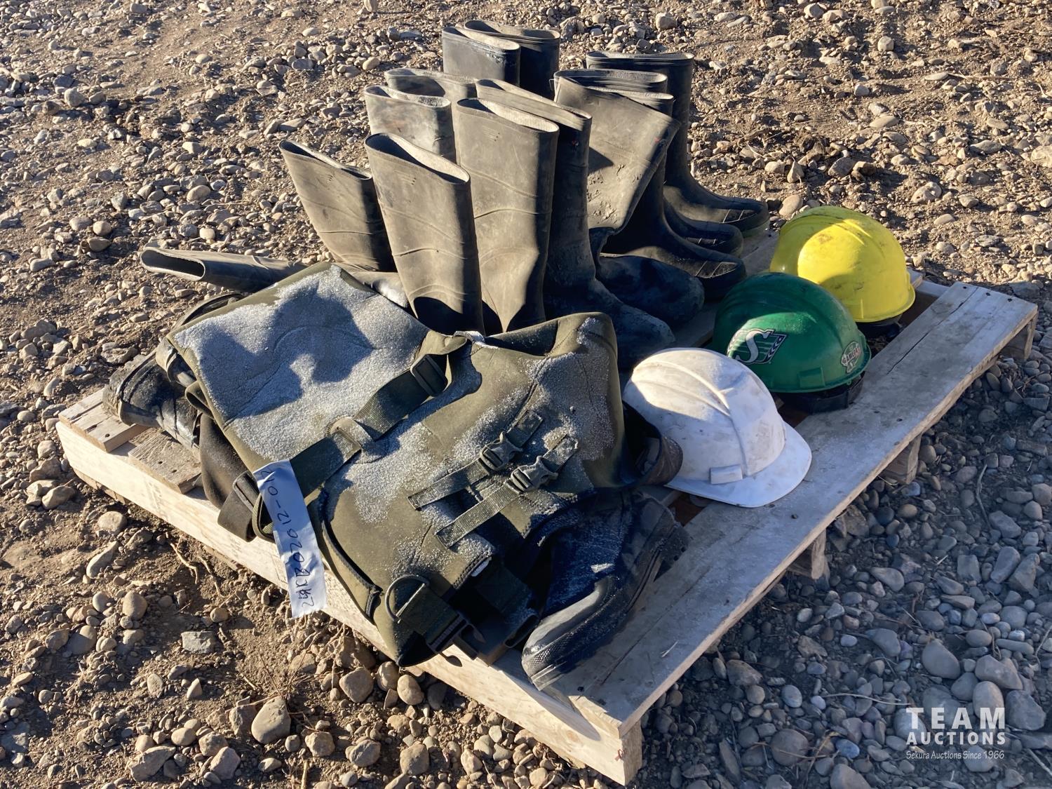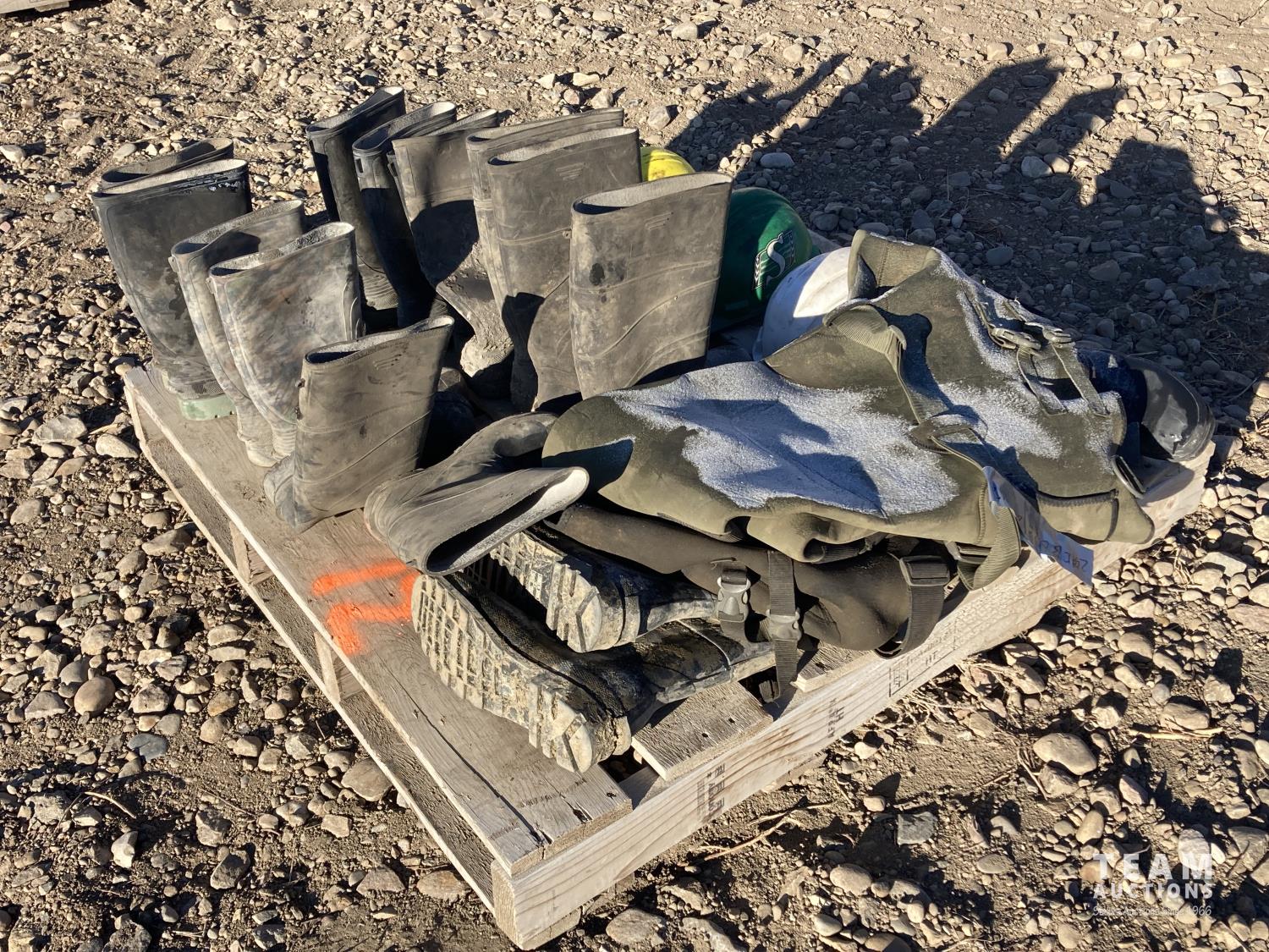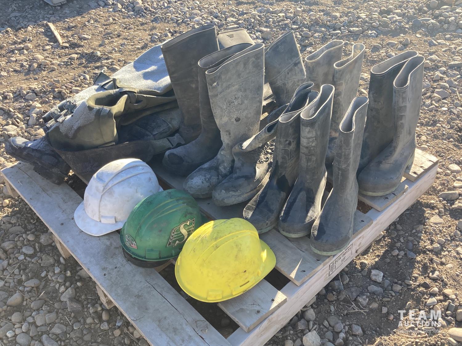 1201 (3) Hard Hats, (6) Gum Boots, (2) Hip Waders
