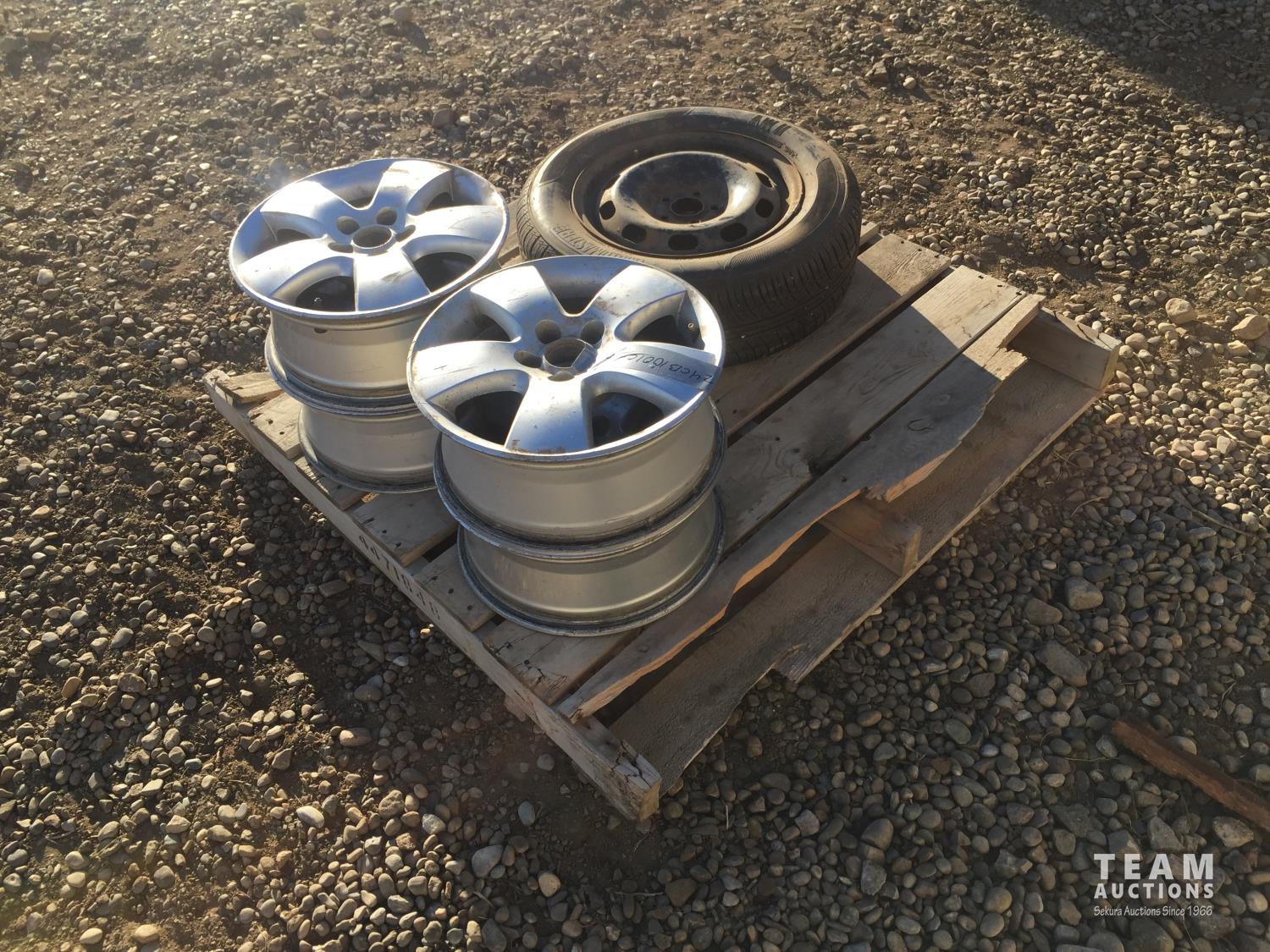 1467 (4) Aluminum Rims & (1) Rim w/ Tire