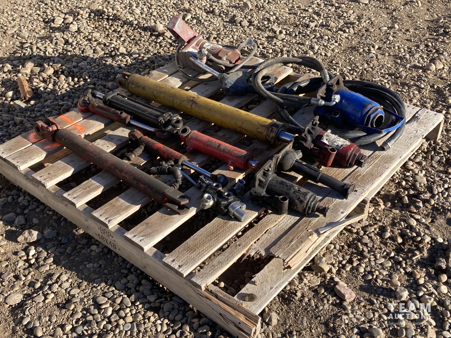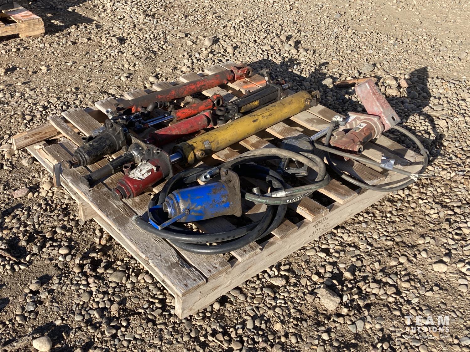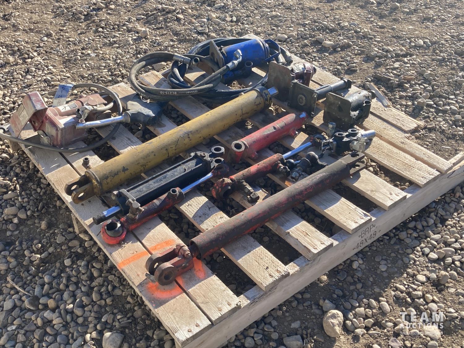 1203 (4) Hydraulic Jacks, (2) Hydraulic Rams, Fuel Pump W/Hose & Handle