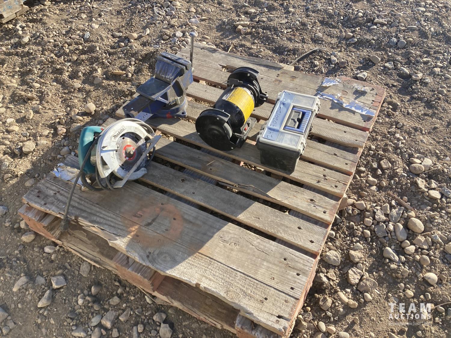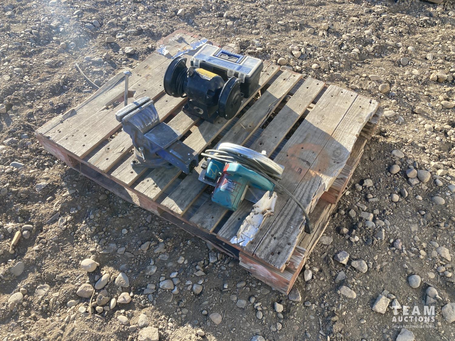 1213 Titan 6 Inch Bench Grinder, Bench Vice, Makita Circular Saw