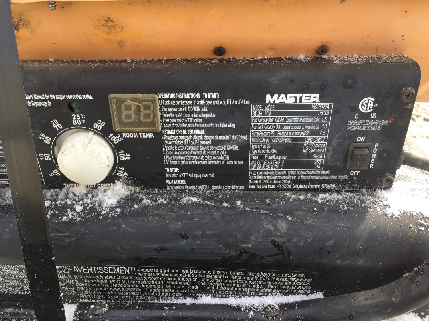 Eagle compressor tanks and 5.5 HP Honda motor, Master 175,000 BTU Kerosene/Diesel forced air heater